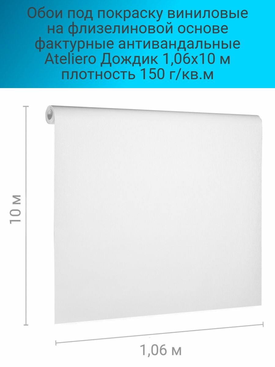 СохранитьОбои под покраску виниловые на флизелиновой основе фактурные антивандальные Ateliero Дождик 1001АВ (1,06х10 м) плотность 150 г/кв.м интересное: