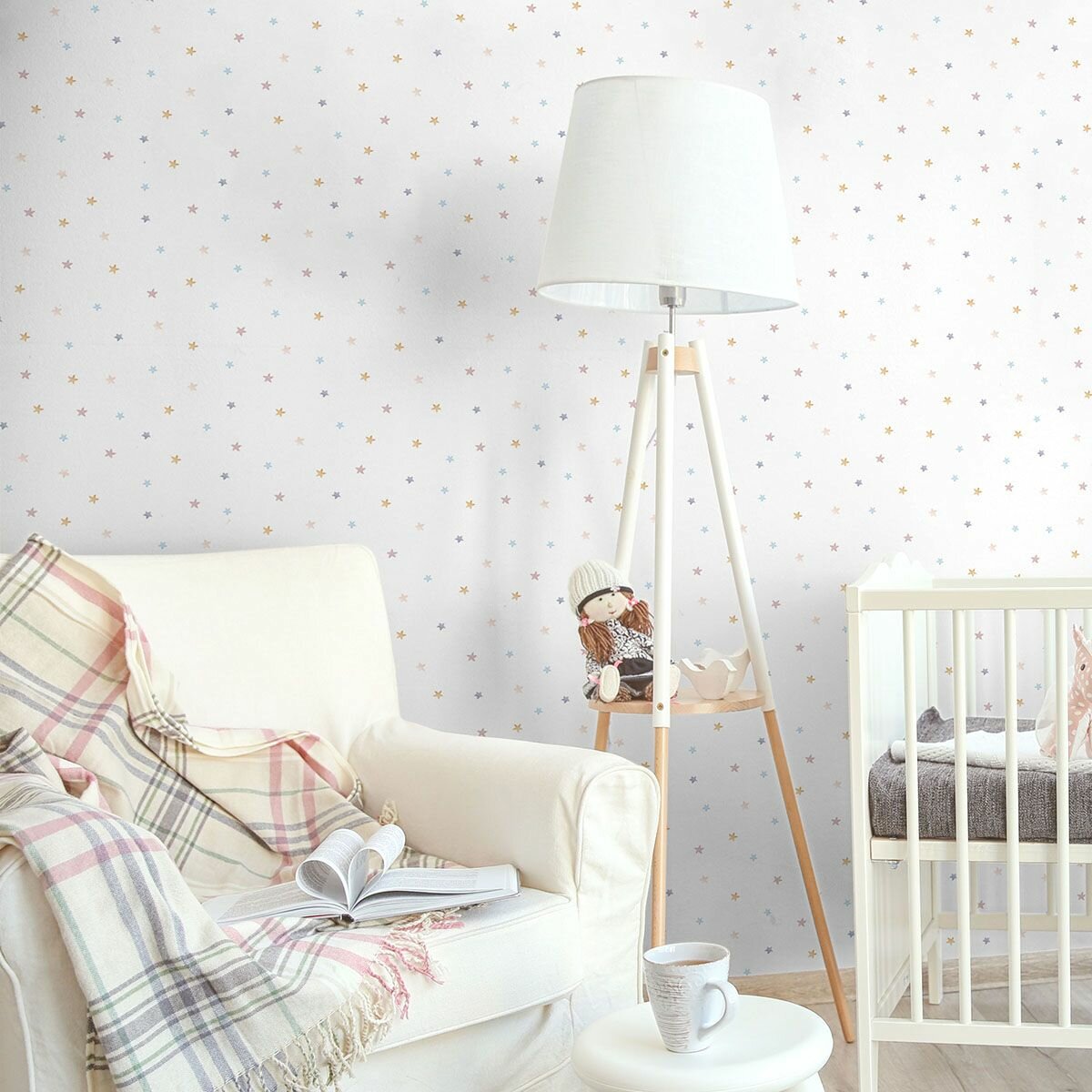 Купить Обои винил на флизелине, в детскую мальчику, звезды на белом, моющиеся, метровые, Romarta