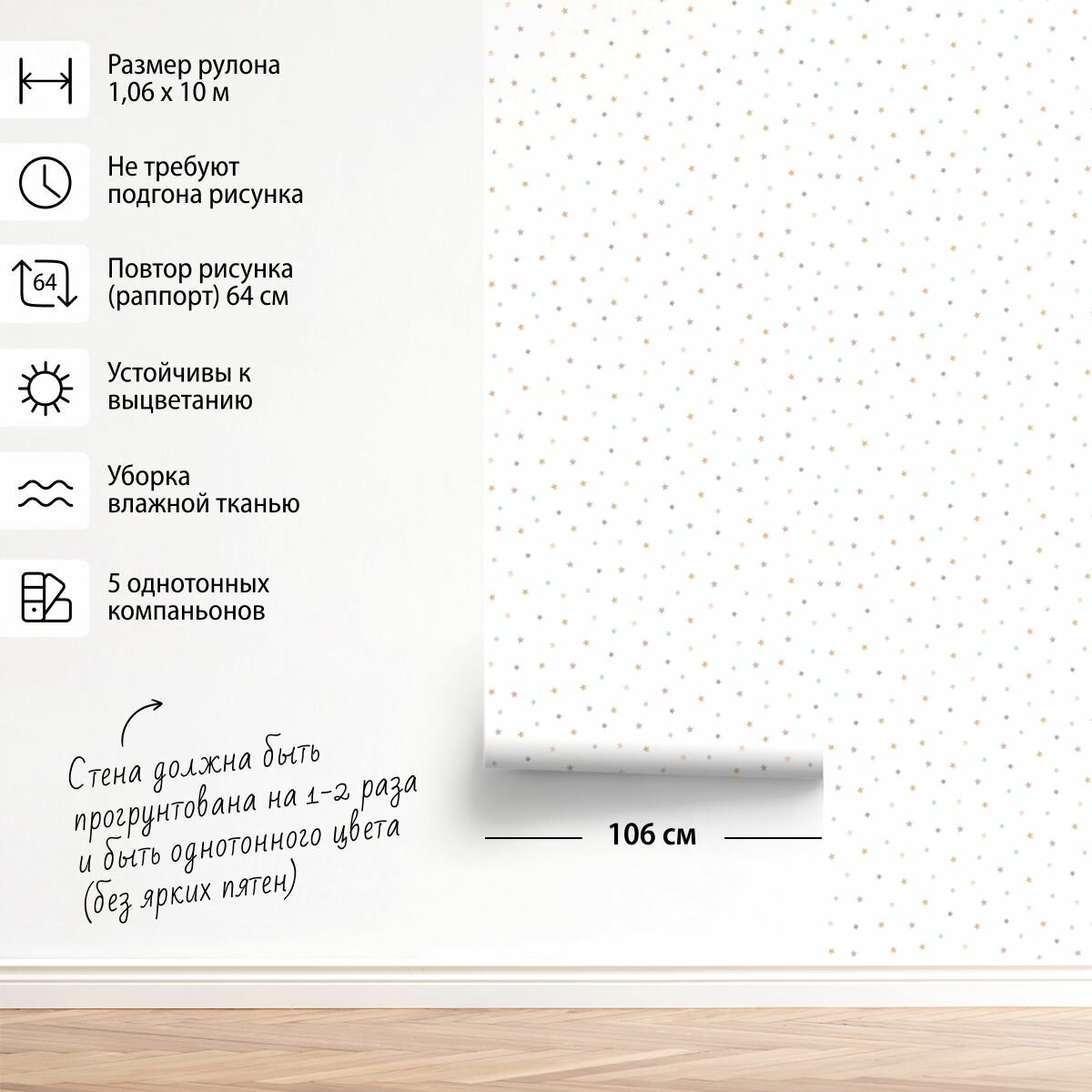 Обои флизелиновые виниловые, для детской, звезды на сером, моющиеся, метровые, Romarta