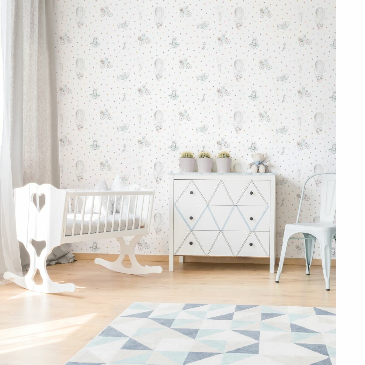 СохранитьОбои виниловые на флизелиновой основе, в детскую комнату, зайчики и звезды, матовые, метровые, Romarta интересное:
