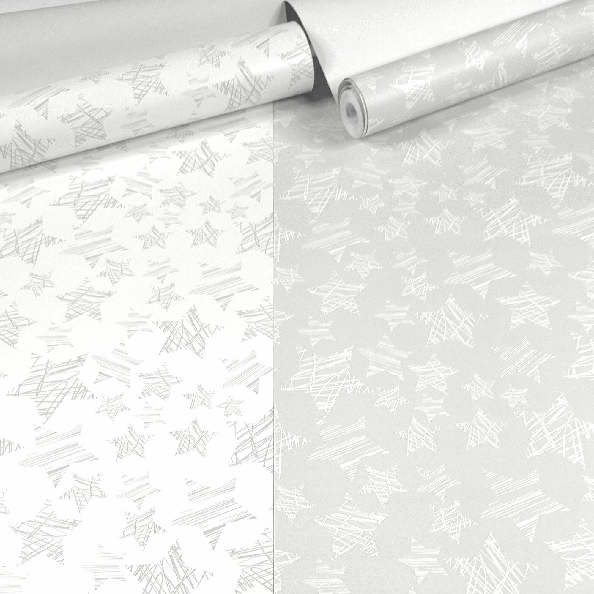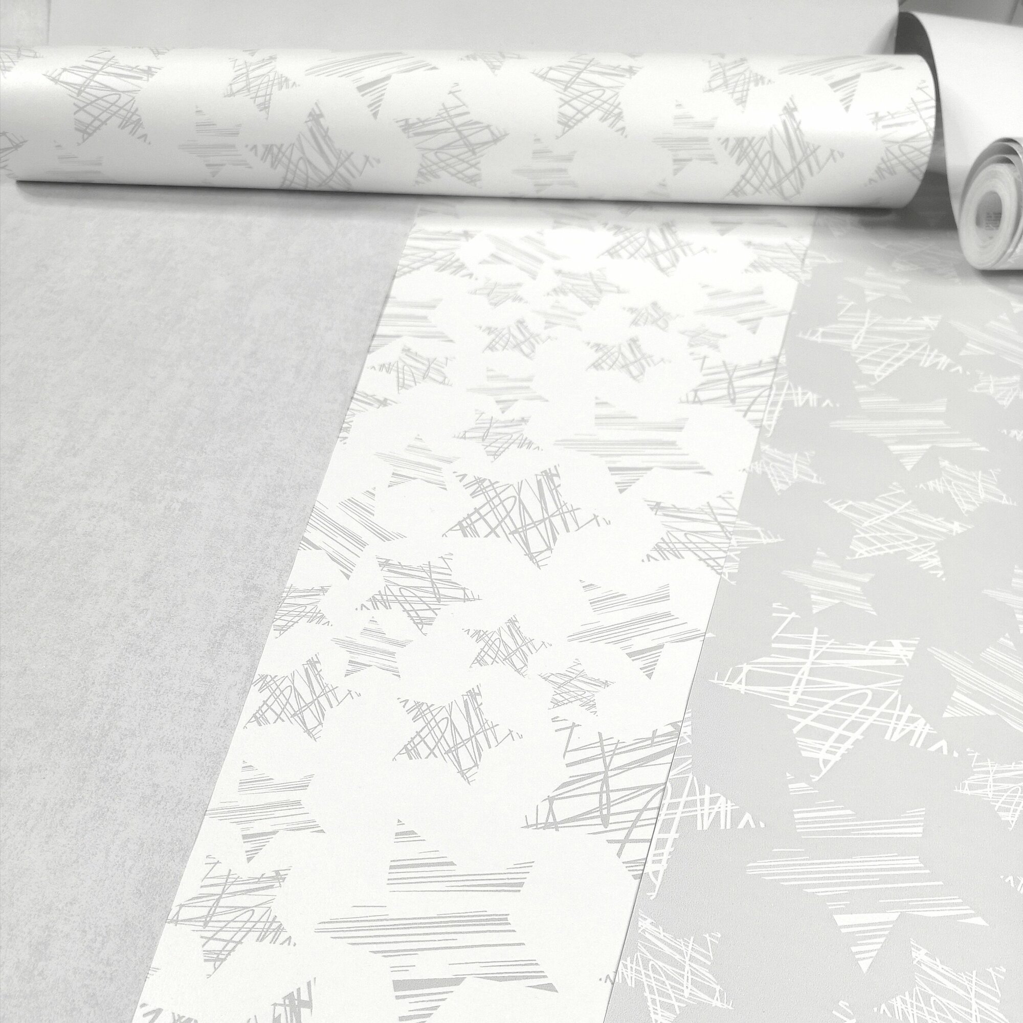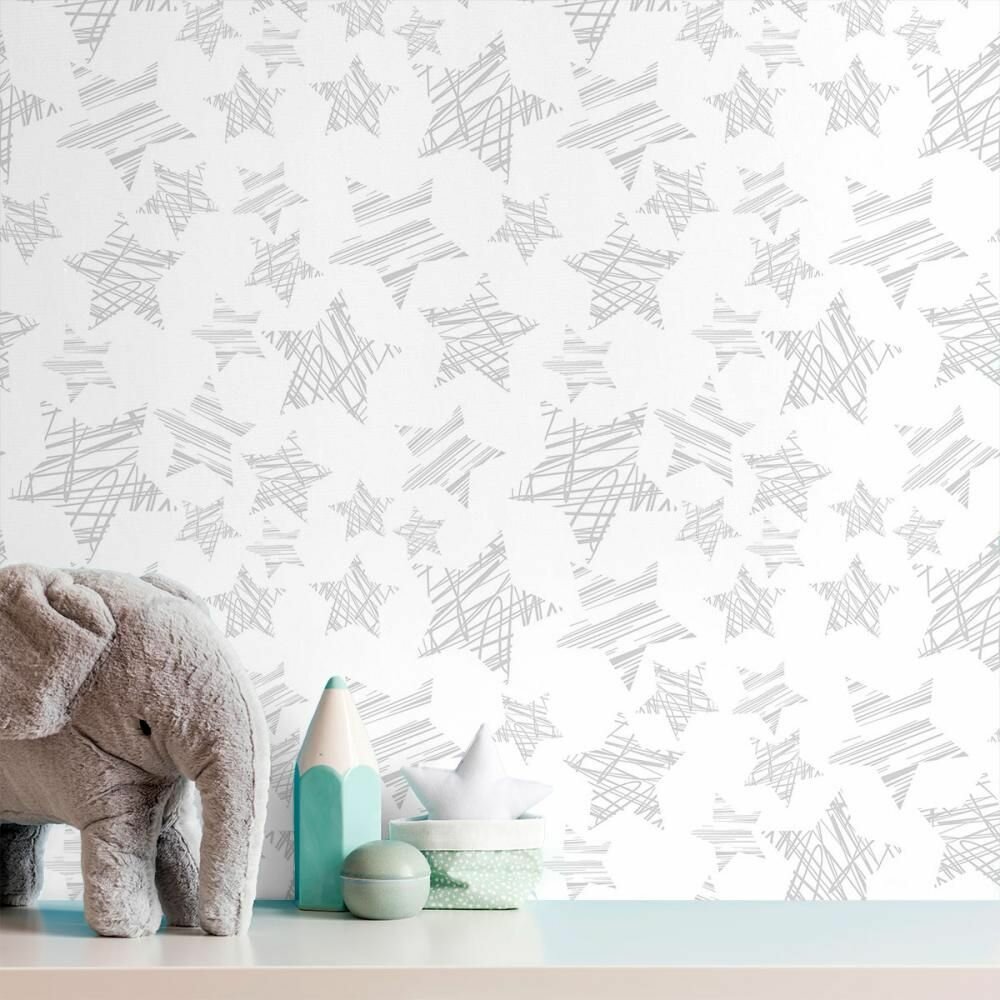 Обои бумажные плотные (дуплекс), матовые, без ПВХ, можно клеить в детскую и спальню, серые со звездами /0.53х10м/