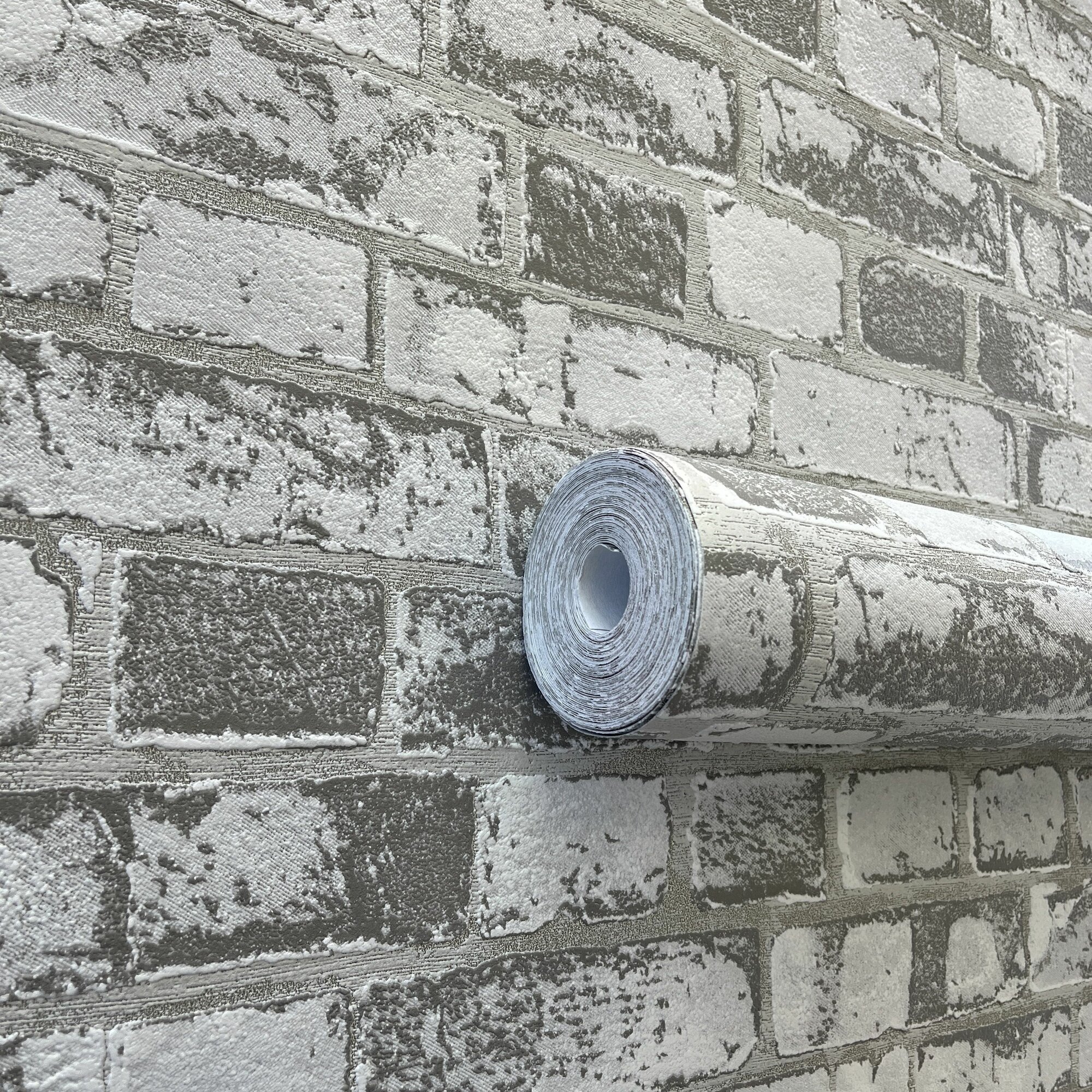 Обои Брик уолл кирпичи светло-серые, метровые (Белвинил, арт. Брик уолл-21)
