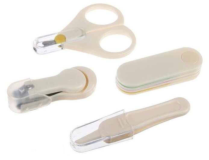 Купить Набор маникюрный детский, 4 предмета: безопасные ножницы, щипчики с ручкой, пилочка, пинцет, цвет бе .