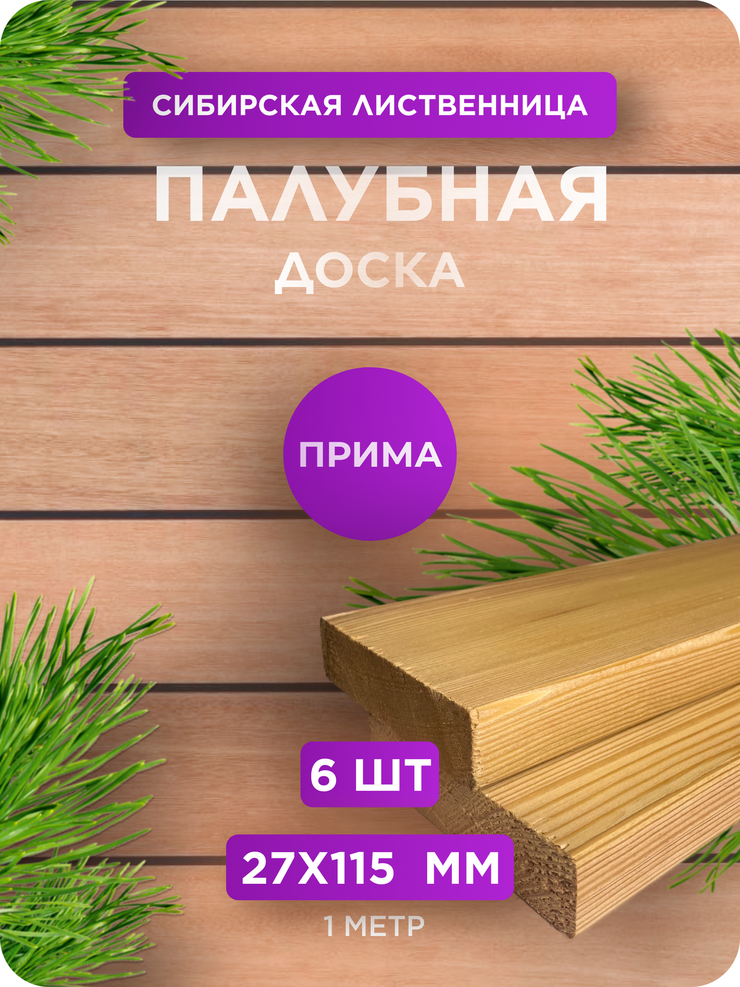 Палубная доска из лиственницы сорт Прима 27х115х1000 - 6 шт интересное: