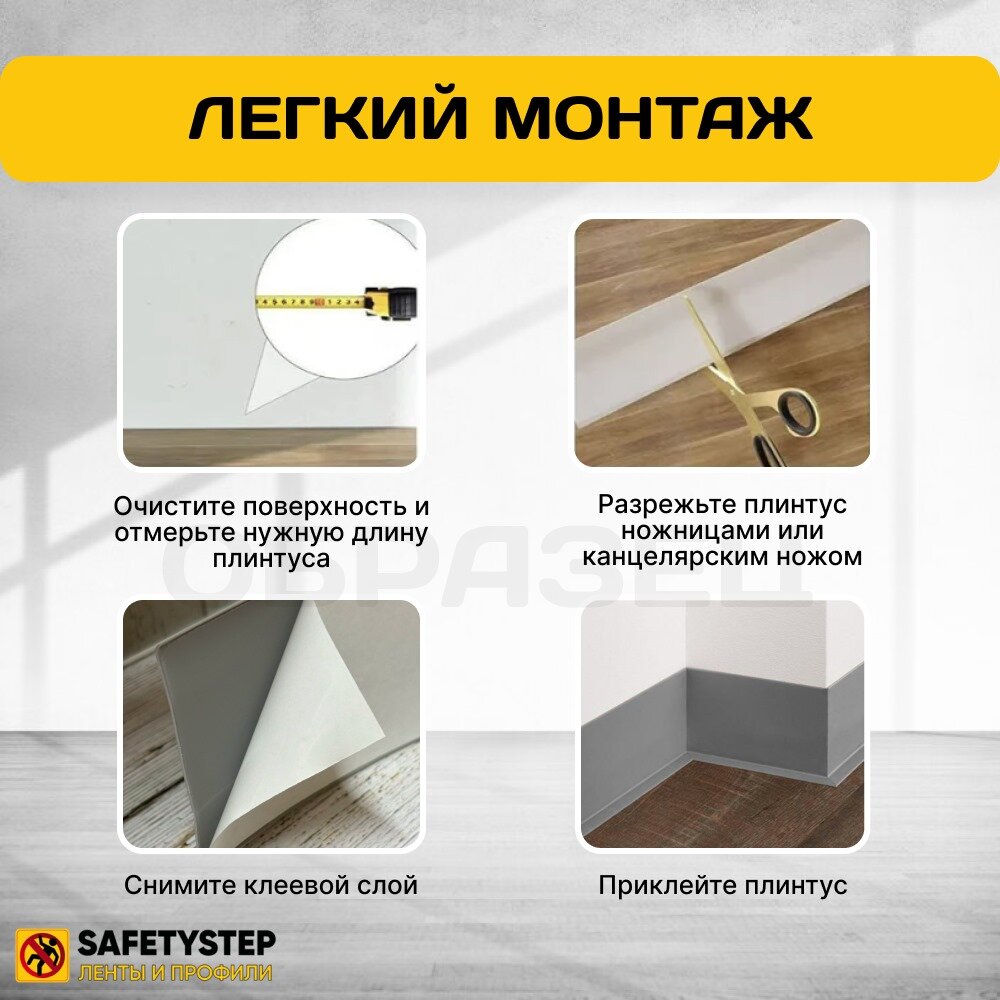 Гибкий плинтус напольный самоклеящийся, 70 мм х 5 метров, серый, гибкий плинтус для пола 50 мм, мягкий плинтус 50 мм