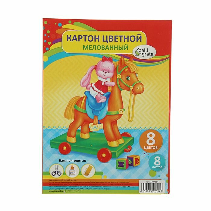 Calligrata Картон цветной А5, 8 листов, 8 цветов "Лошадка", мелованный 240 г/м2, в папке интересное: