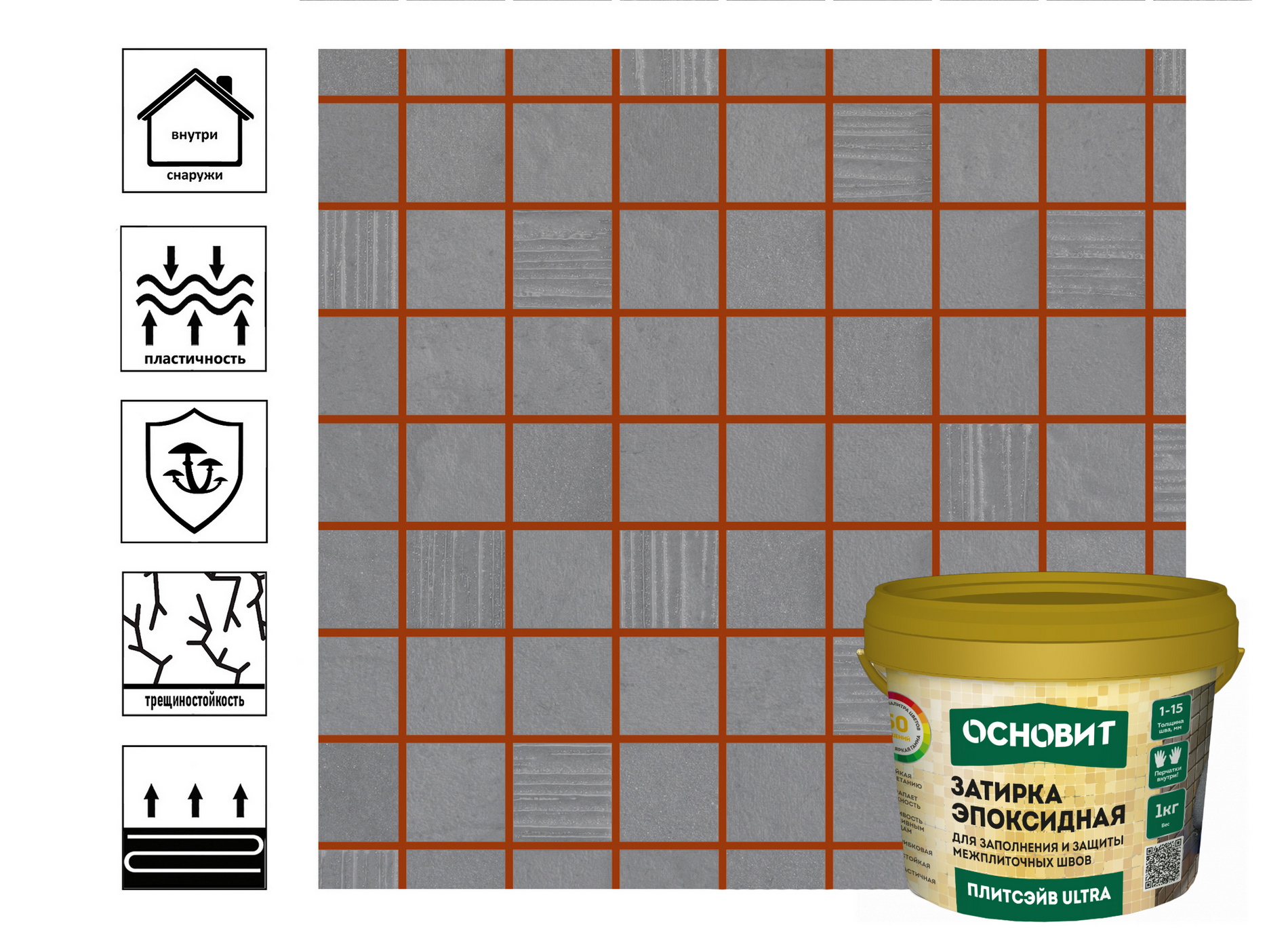 | Область применения | агломерированная плитка, бассейны, декоративный кирпич, для ванной комнаты, для внутренних работ, для герметизации угловых швов и стыков, для затирки швов, для кухни, для наружных работ, для пола, для производственных помещений, для стен, для теплого пола, искусственный камень, керамическая плитка, керамогранит, клинкерная плитка, мозаика, натуральный камень, прозрачная и полупрозрачная плитка, террасы и балконы |