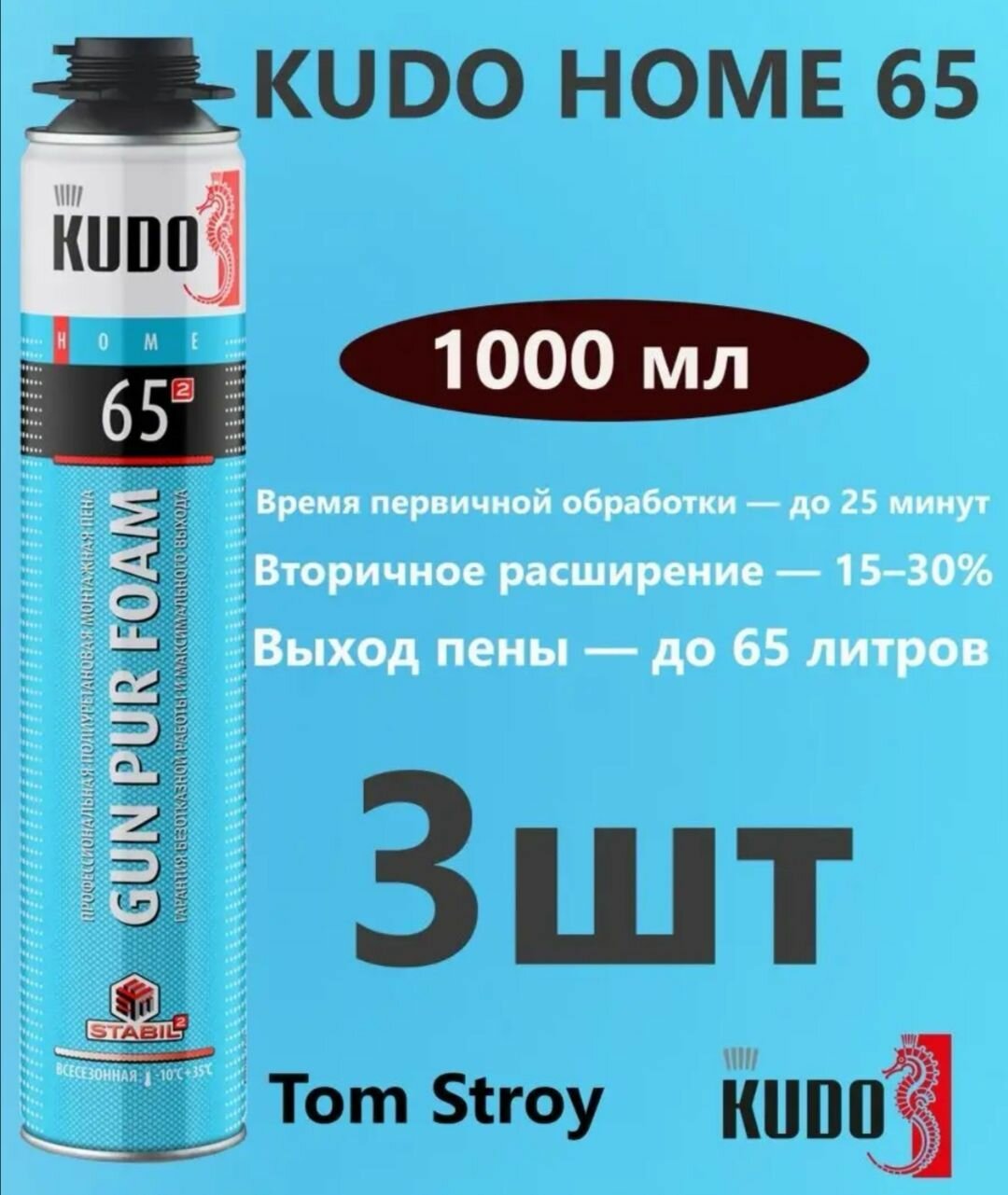 Купить Монтажная пена профессиональная всесезонная KUDO HOME 65, 1000мл, 3шт