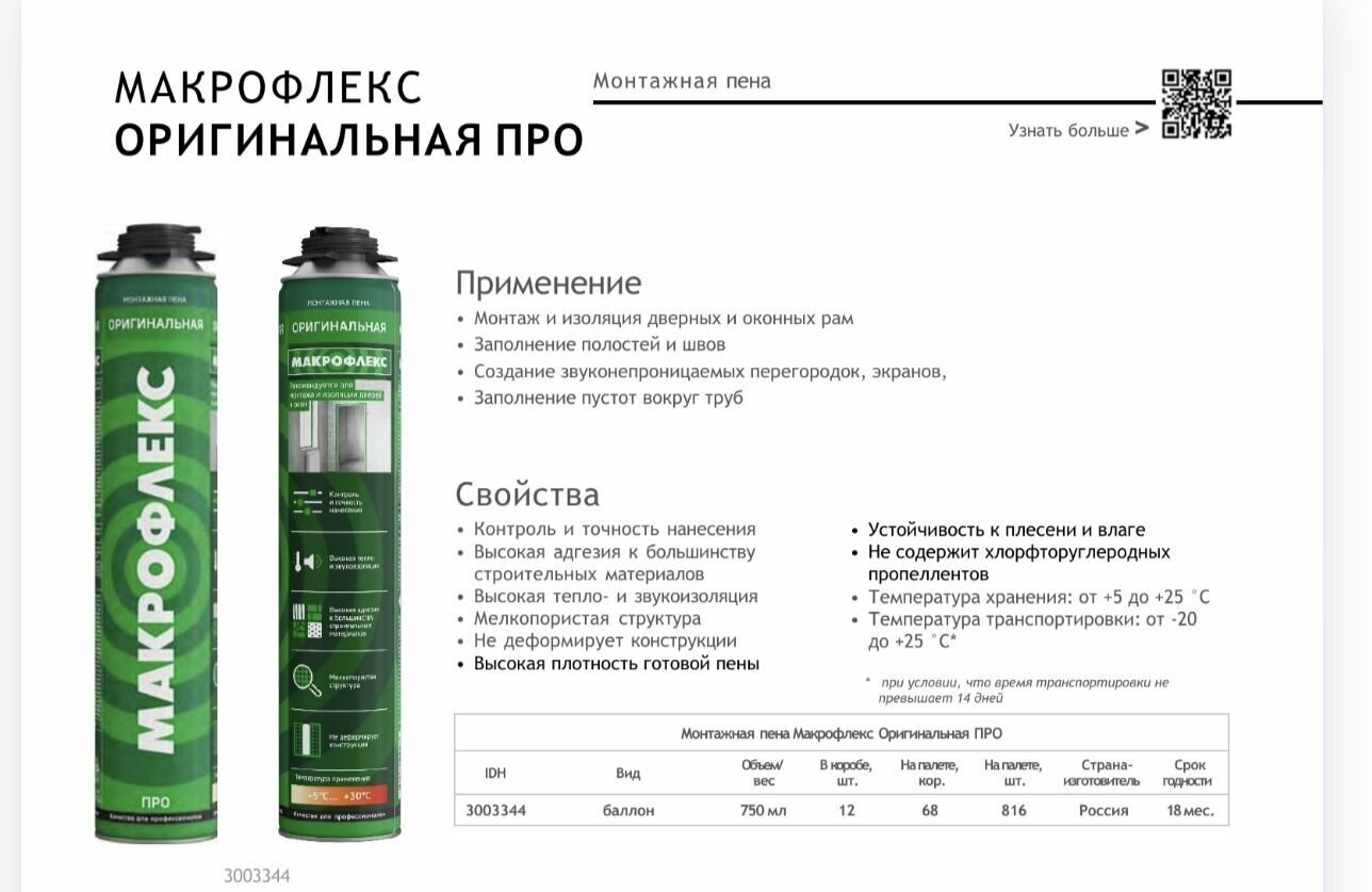 Пена монтажная оригинальная профессиональная Макрофлекс про 750 мл интересное: