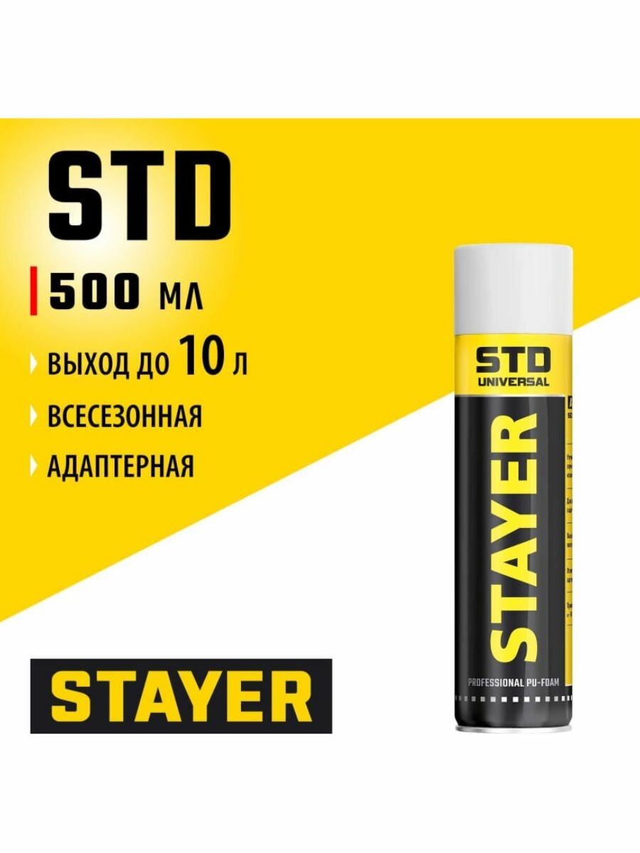 Купить Монтажная пена STAYER STD 500мл адаптерная выход до 10л (41130)