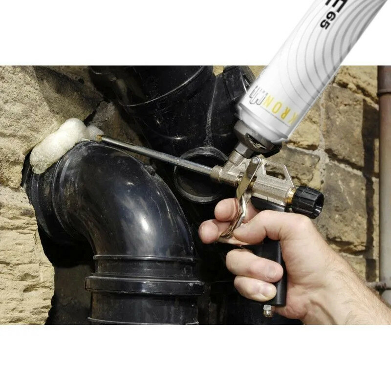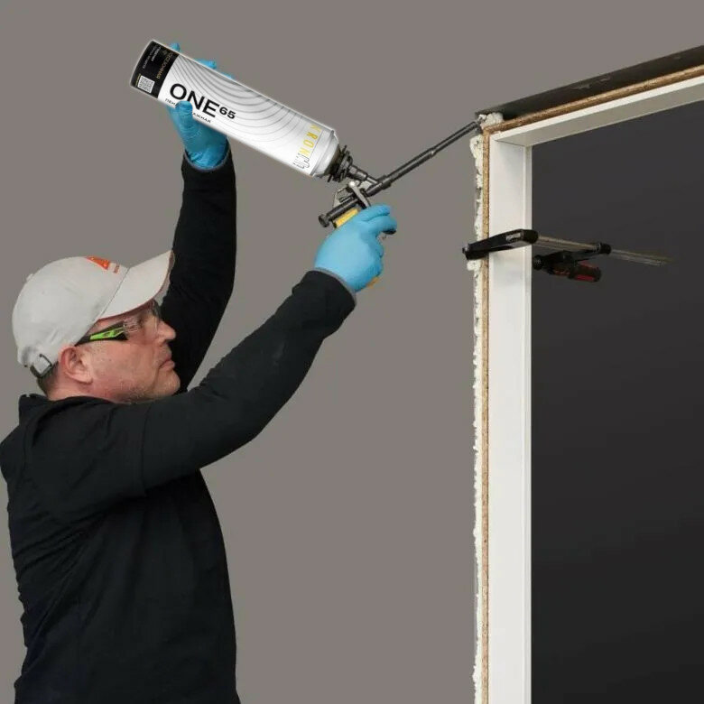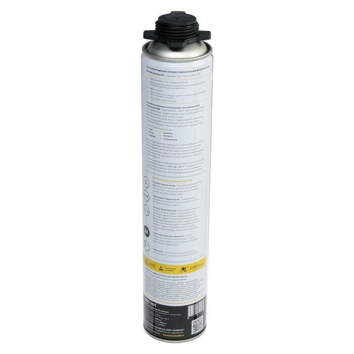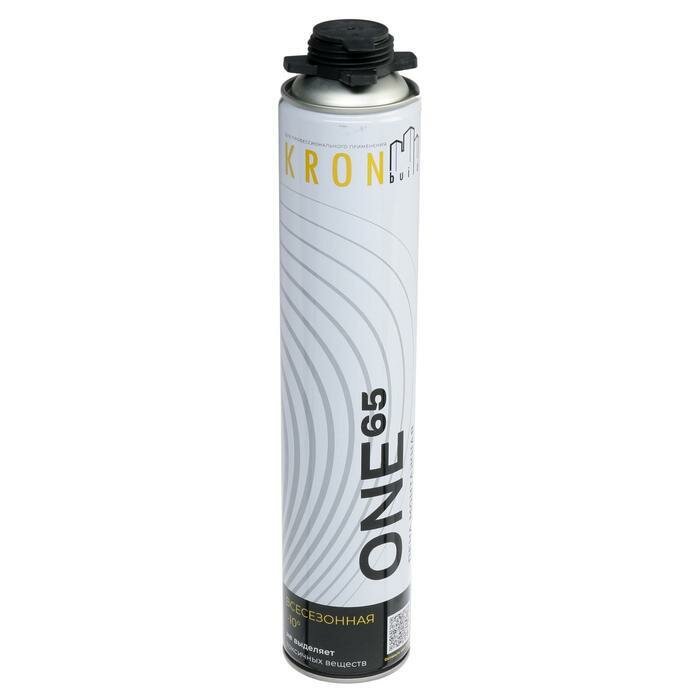 Пена под пистолет монтажная всесезонная KRONBUILD ONE 65 (850 мл, 770 грамм). Для окон, дверей, стен из бетона, кирпича, дерева.
