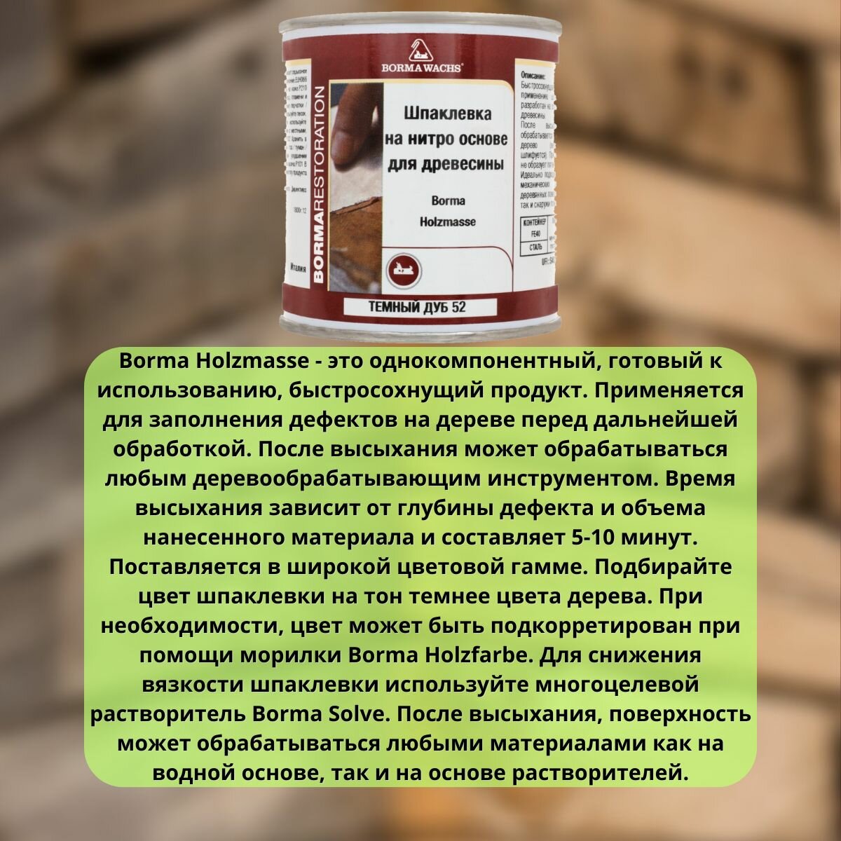 Шпаклевка на нитро основе HOLZMASSE 52 Темный дуб Borma 250мл R1800RS интересное: