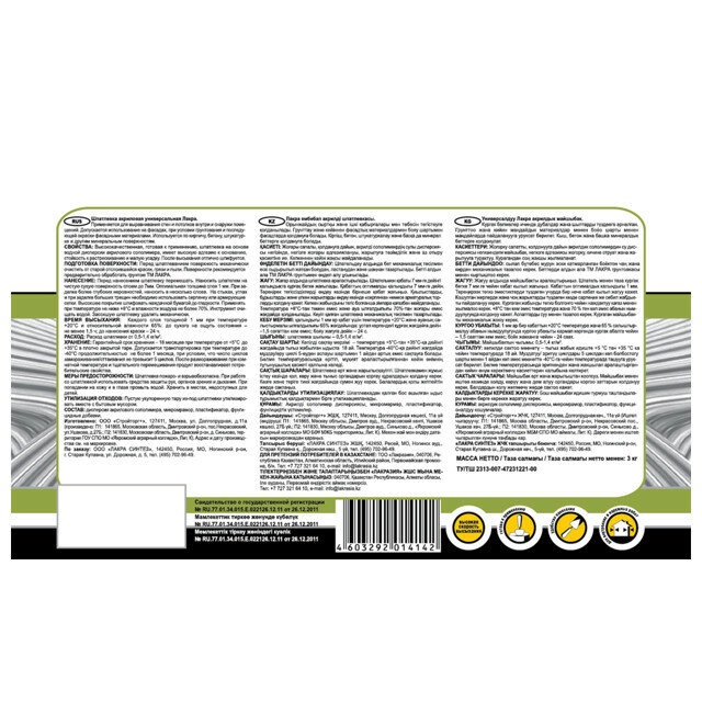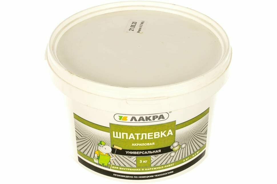 Шпатлевка акриловая универсальная Лакра для внутренних и наружных работ 3кг Россия интересное: