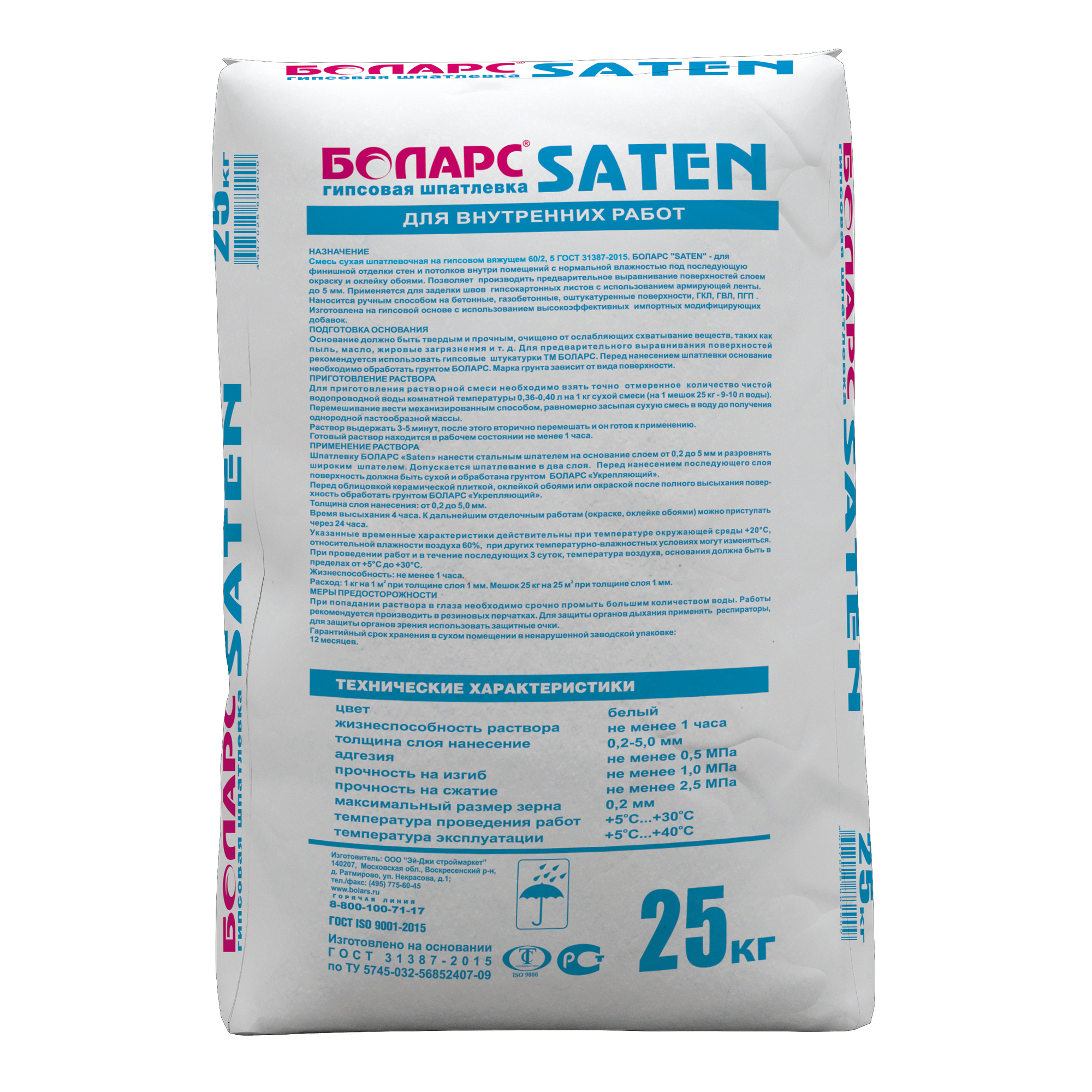 Шпаклевка гипсовая боларс SATEN белая 25 кг интересное: