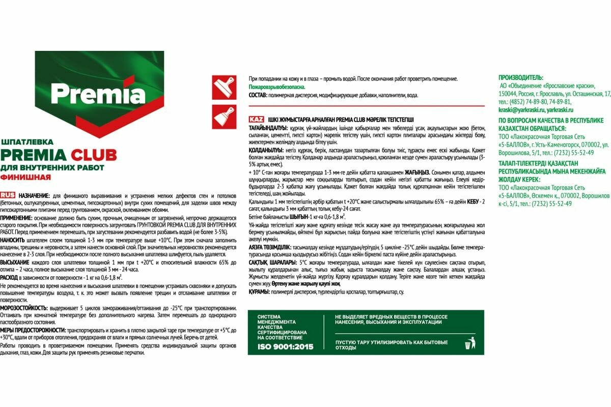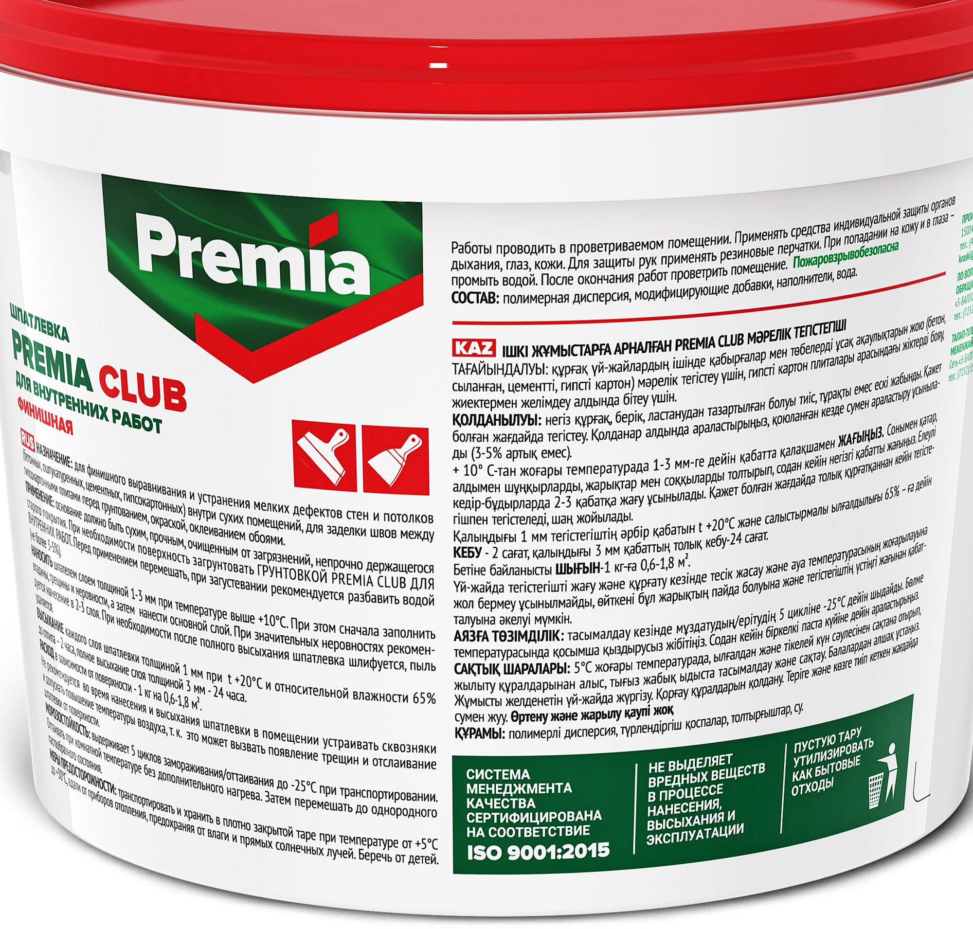 PREMIA CLUB шпатлевка финишная для внутренних работ 3.5 кг интересное: