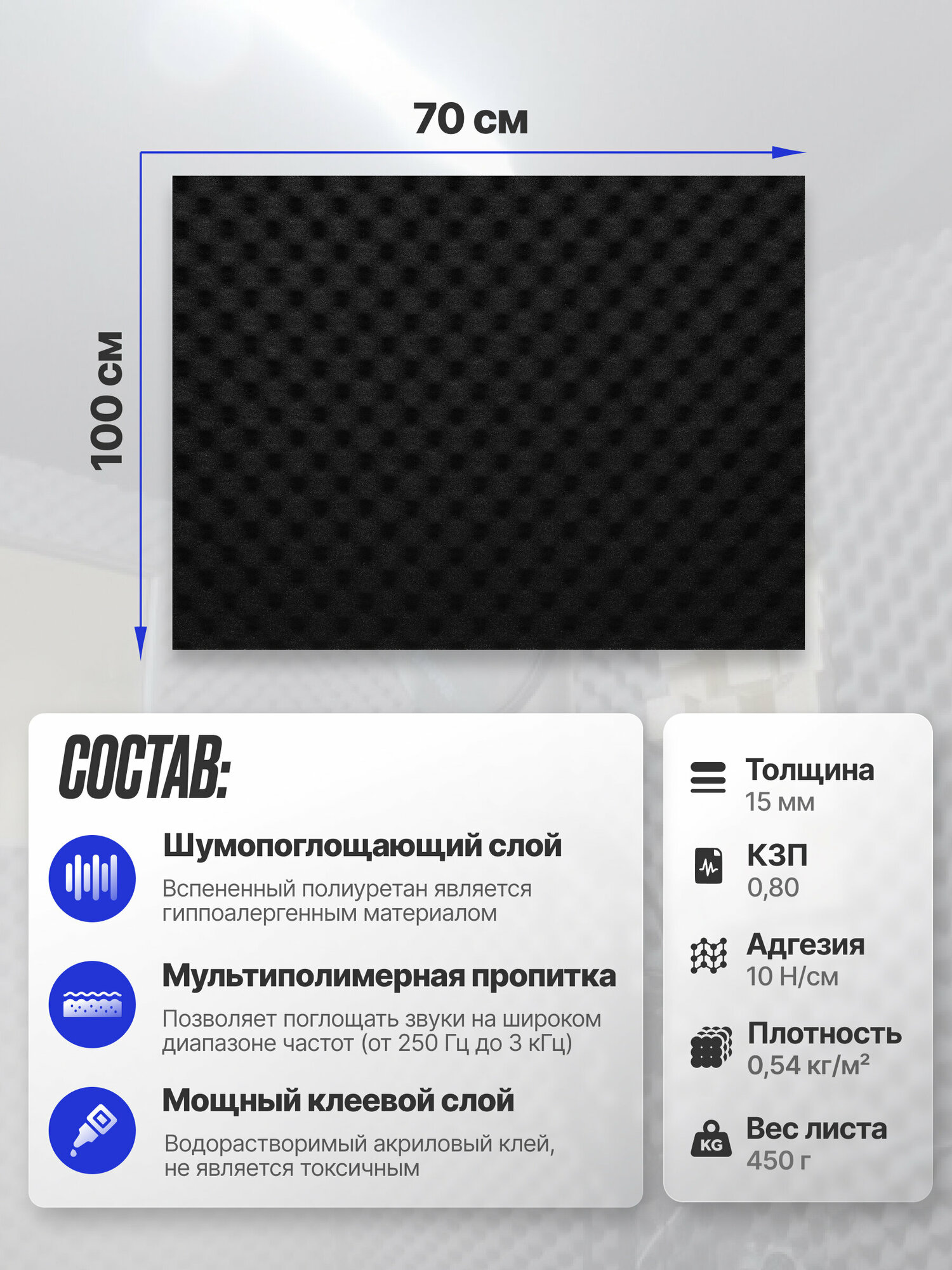 | Дополнительная информация | Акустическй поролон оролон 1 лист |