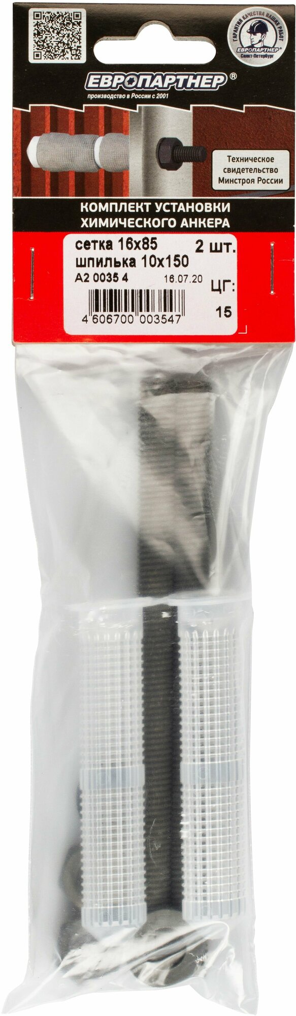 Купить Европартнер Комп. устан. хим.анкера P10M в пустот, сетка 16х85 + шпил ТДЦ 10х150мм 2 шт. A2 0035 4