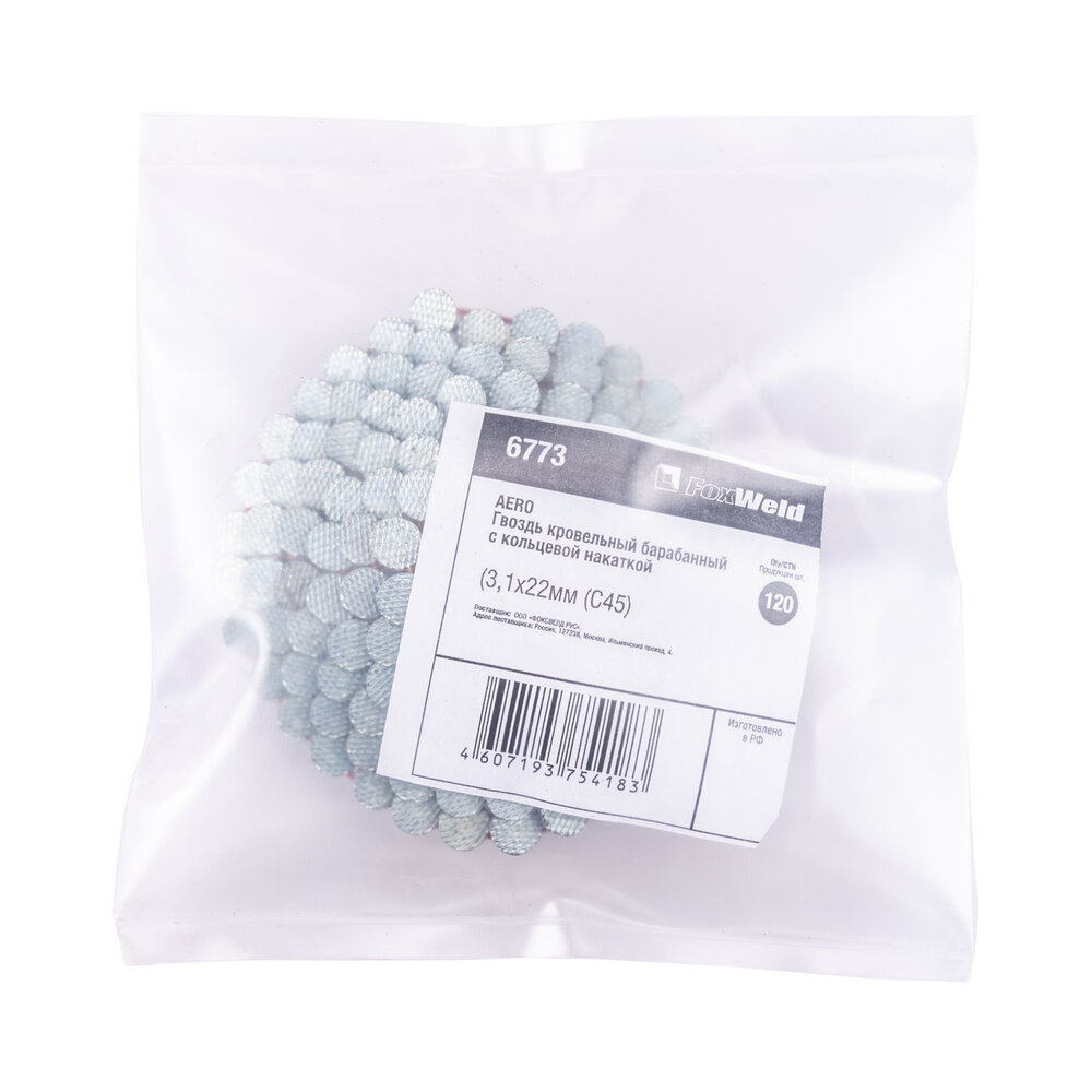 Барабанный кровельный гвоздь FOXWELD AERO c кольцевой накаткой, 3,1 х 22 мм, лента 120 шт /C45/ 6773