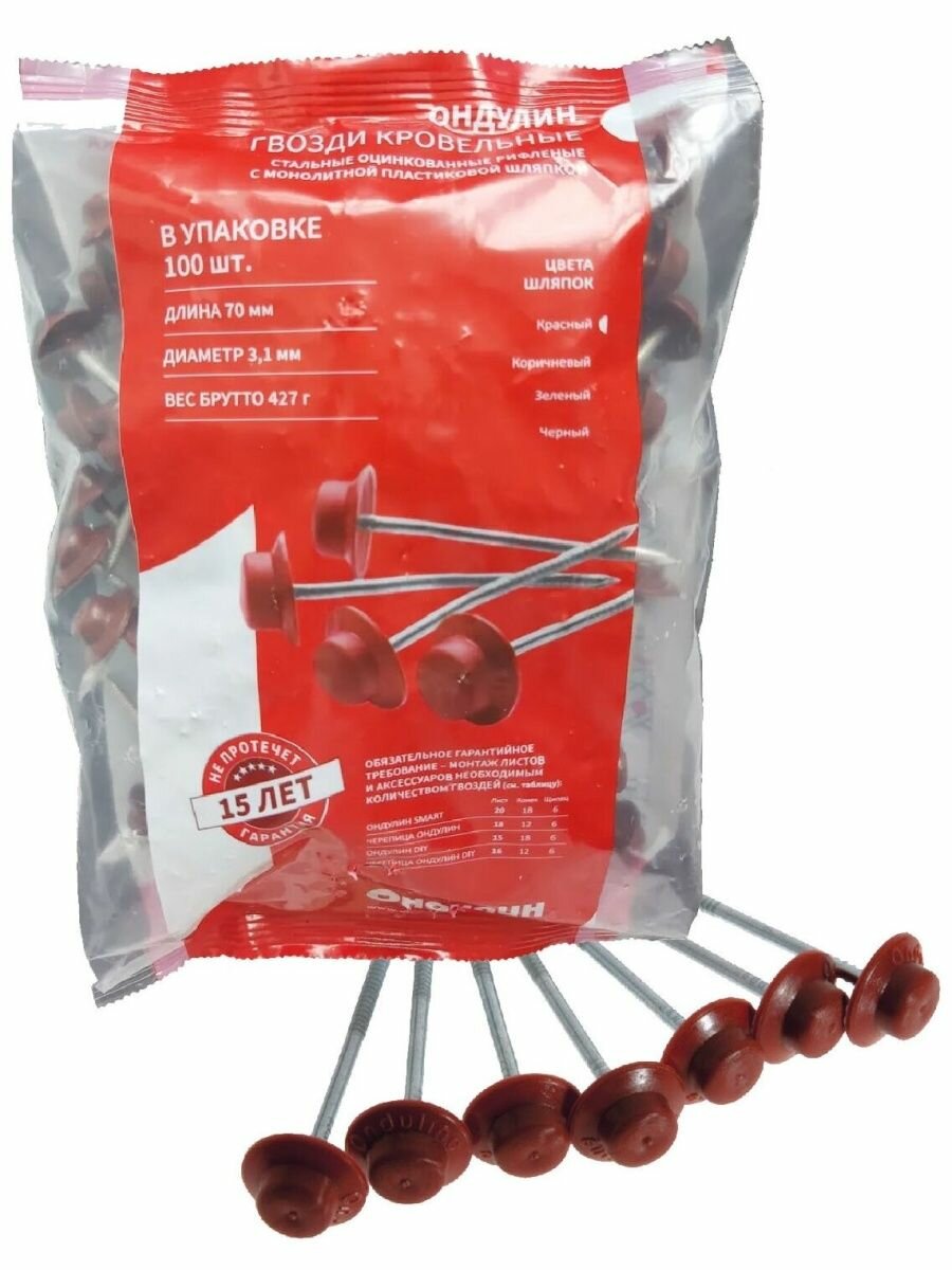 Гвоздь кровельный Ондулин для монтажа крыши оцинкованный, диаметр 3,1мм, длина 75мм, 100 шт/уп, вес 0,49 кг, красный интересное:
