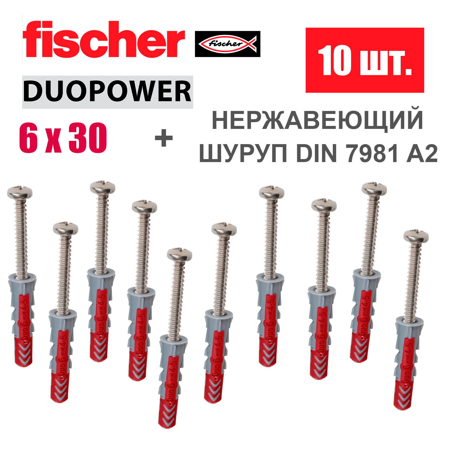 Дюбель универсальный Fischer DUOPOWER 6x30 / Шуруп нержавейка, 10 шт. интересное: