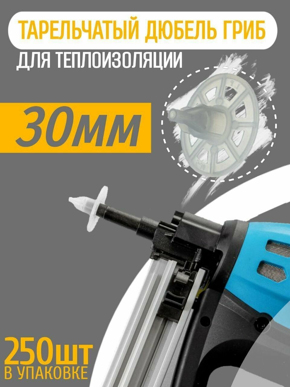 Тарельчатый дюбель гриб для монтажных пистолетов (без гвоздя) 30мм - 250шт интересное: