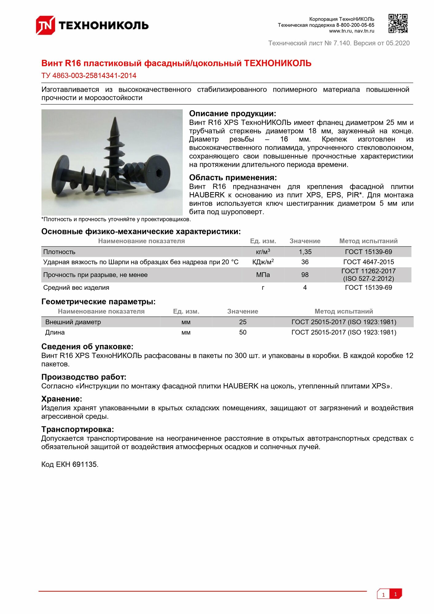 Винт Технониколь R16 пластиковый, фасадный/цокольный, 50 шт. XPS TN693440 интересное:
