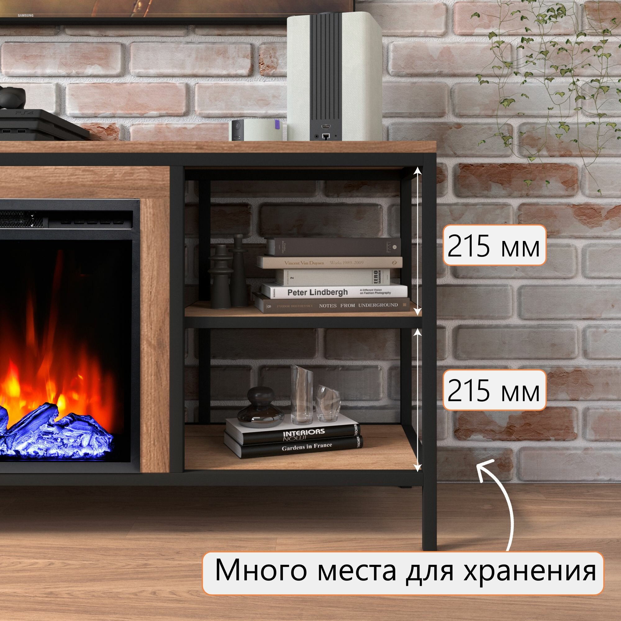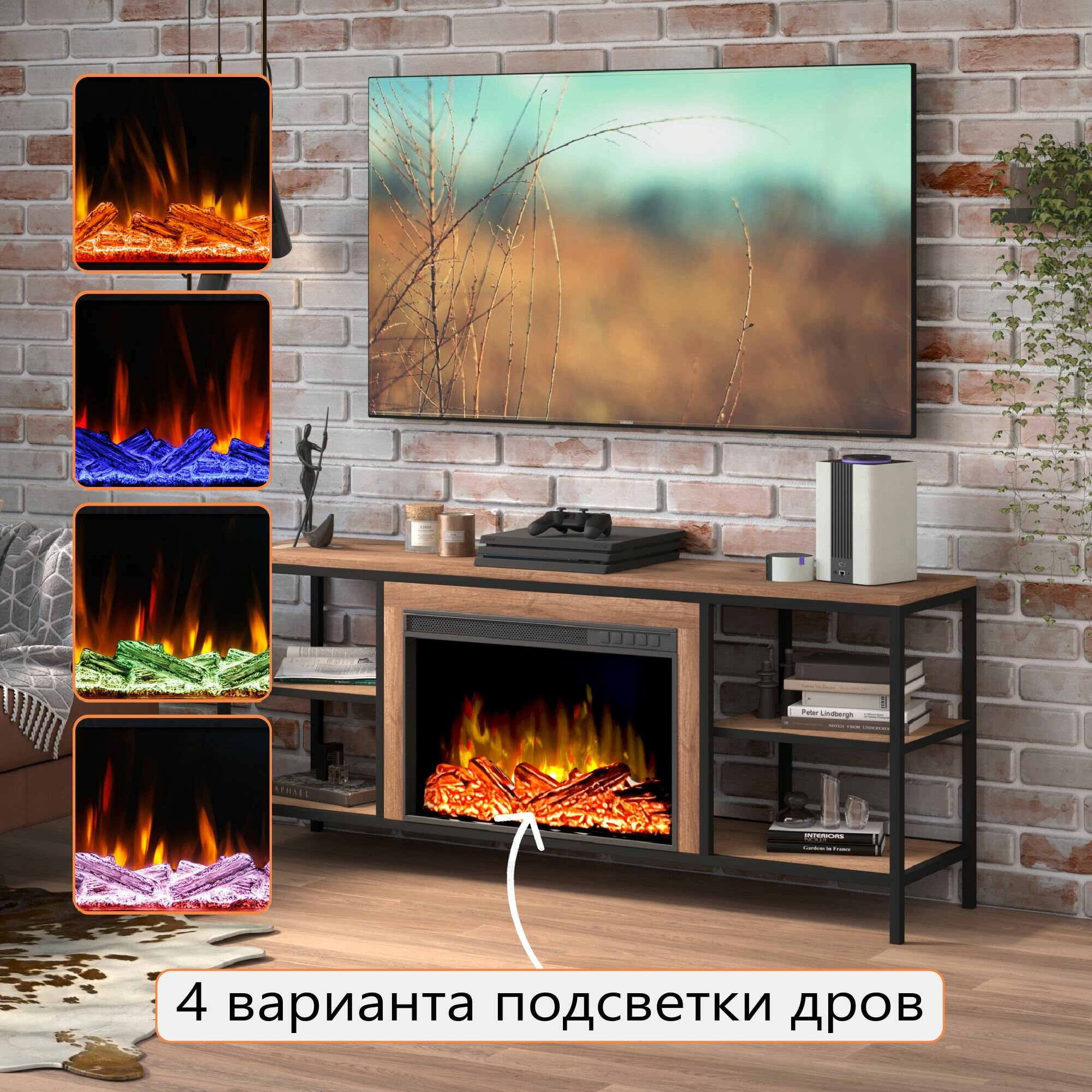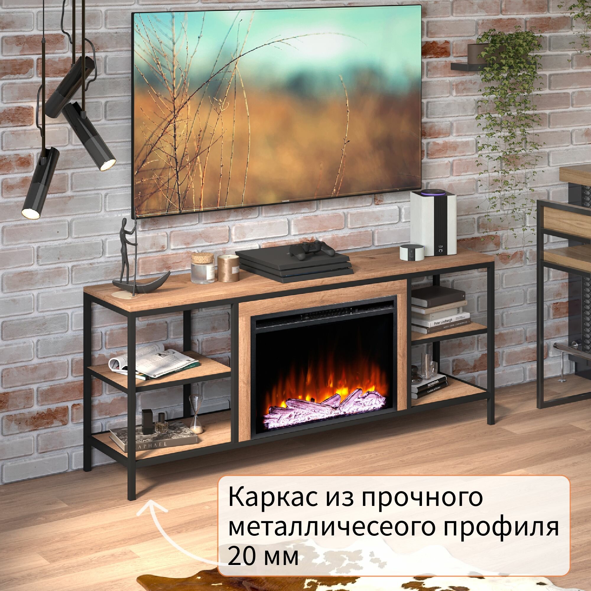 Тумба под телевизор ELEKAM LOFT с очагом и порталом, с пультом, обогревом и имитацией пламени ( электрокамин) интересное:
