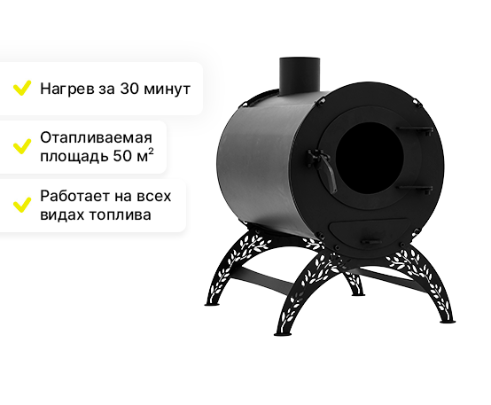 Отопительная печь-буржуйка VITA стандарт С конвекторами 100 м2/ дровяная печь для дома / дачи / гаража / палаток