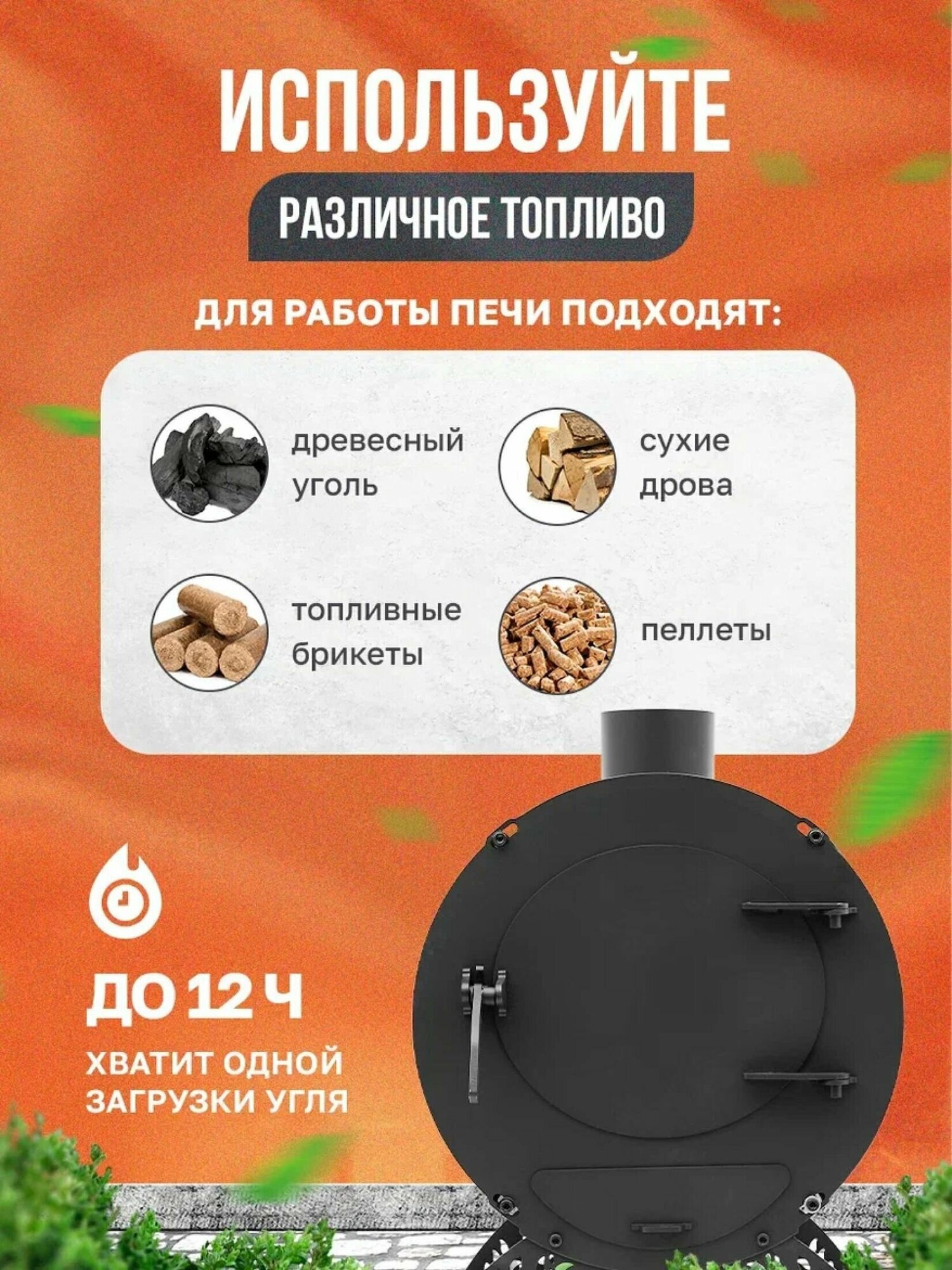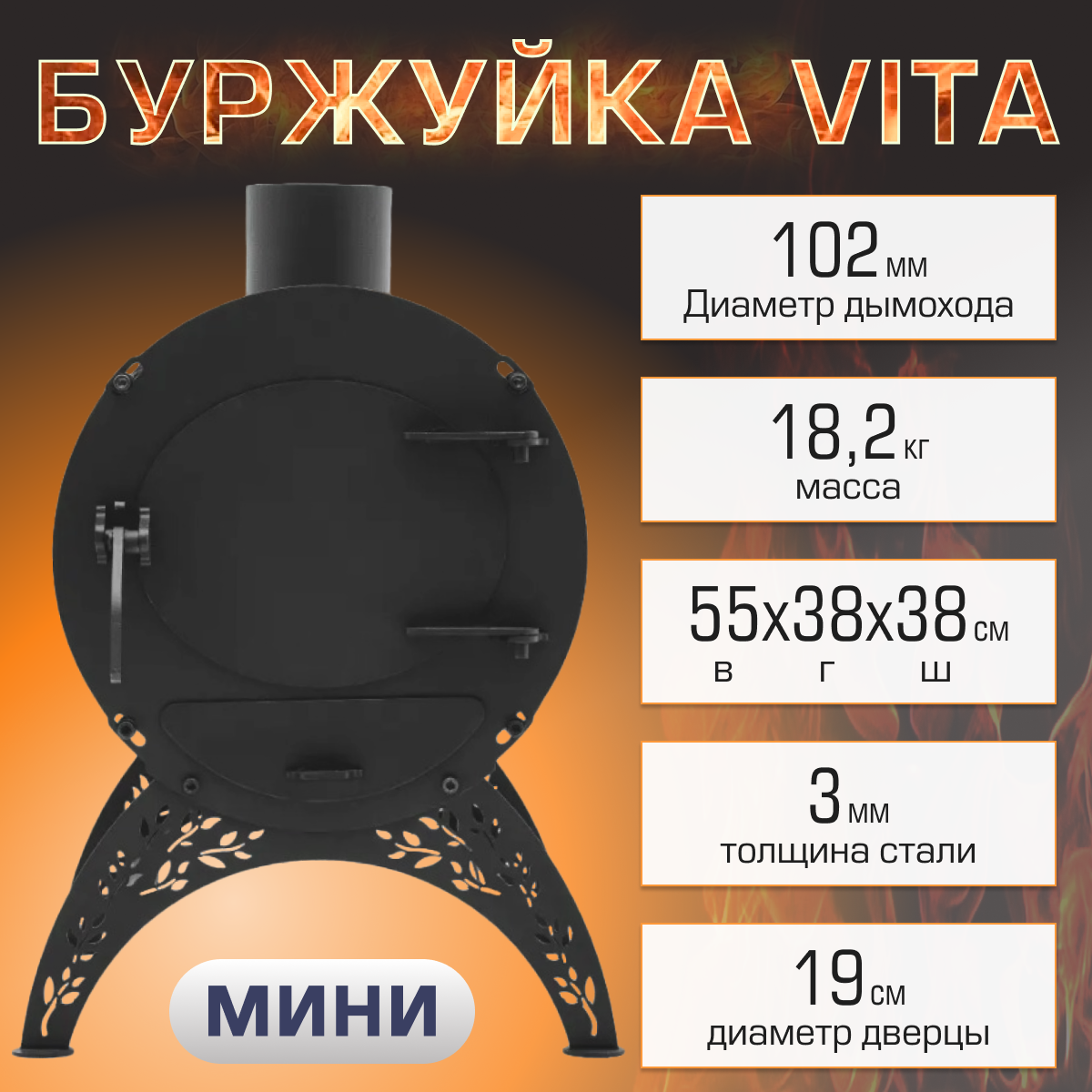 Отопительная печь-буржуйка VITA мини С конвекторами 50 м2 / дровяная печь для дома / дачи / гаража / палаток
