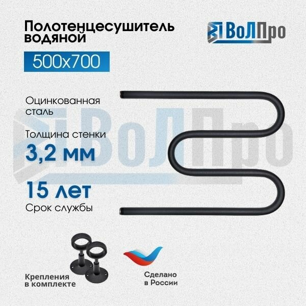 Полотенцесушитель водяной "ВоЛПро" М-образный, черный, 50x70, 1", с креплениями
