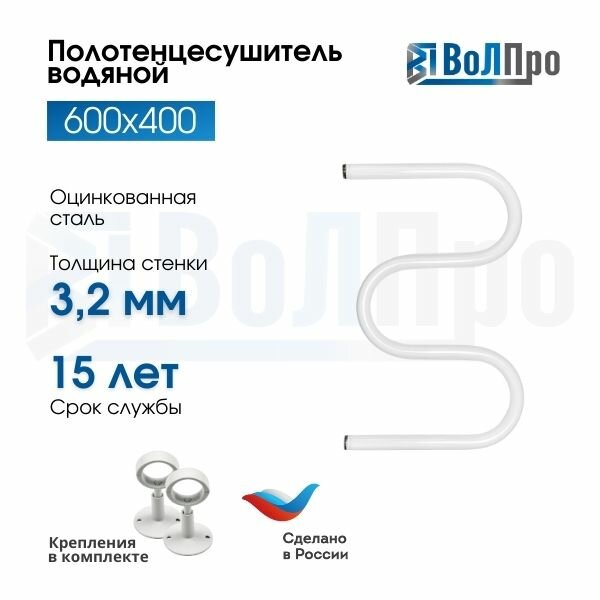 Полотенцесушитель водяной "ВоЛПро" М-образный, белый, 60x40, 1", с креплениями