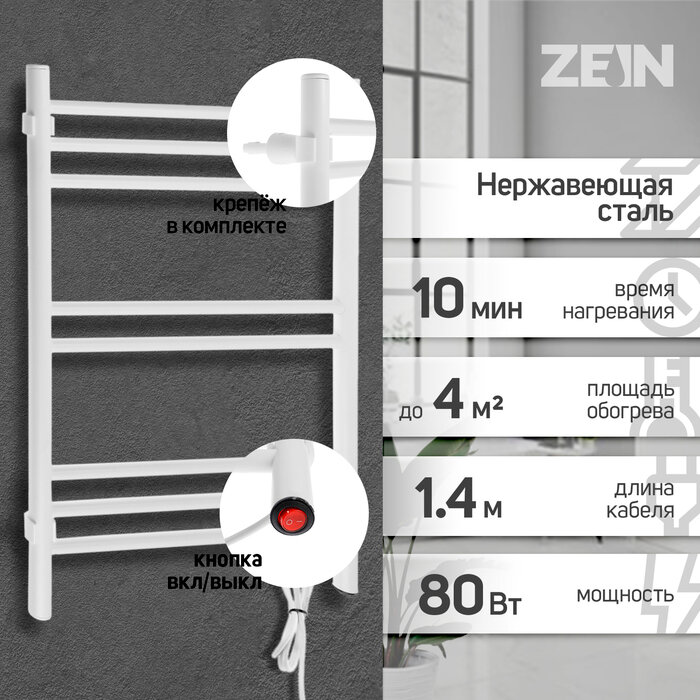 Купить ZEIN Полотенцесушитель электрический ZEIN PE-08 "Богема", 400х600 мм, 8 перекладин, белый