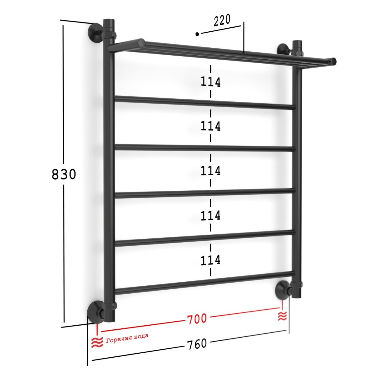 Полотенцесушитель Водяной Onix, модель Classic Plus Black Right 700x800, Лесенка с боковым подключением справа, Черный матовый, полный комплект