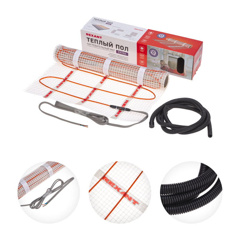 Теплый пол, нагревательный мат REXANT Extra, двухжильный, площадь 0,7 м², 0,5х1,4 м, 112 Вт интересное: