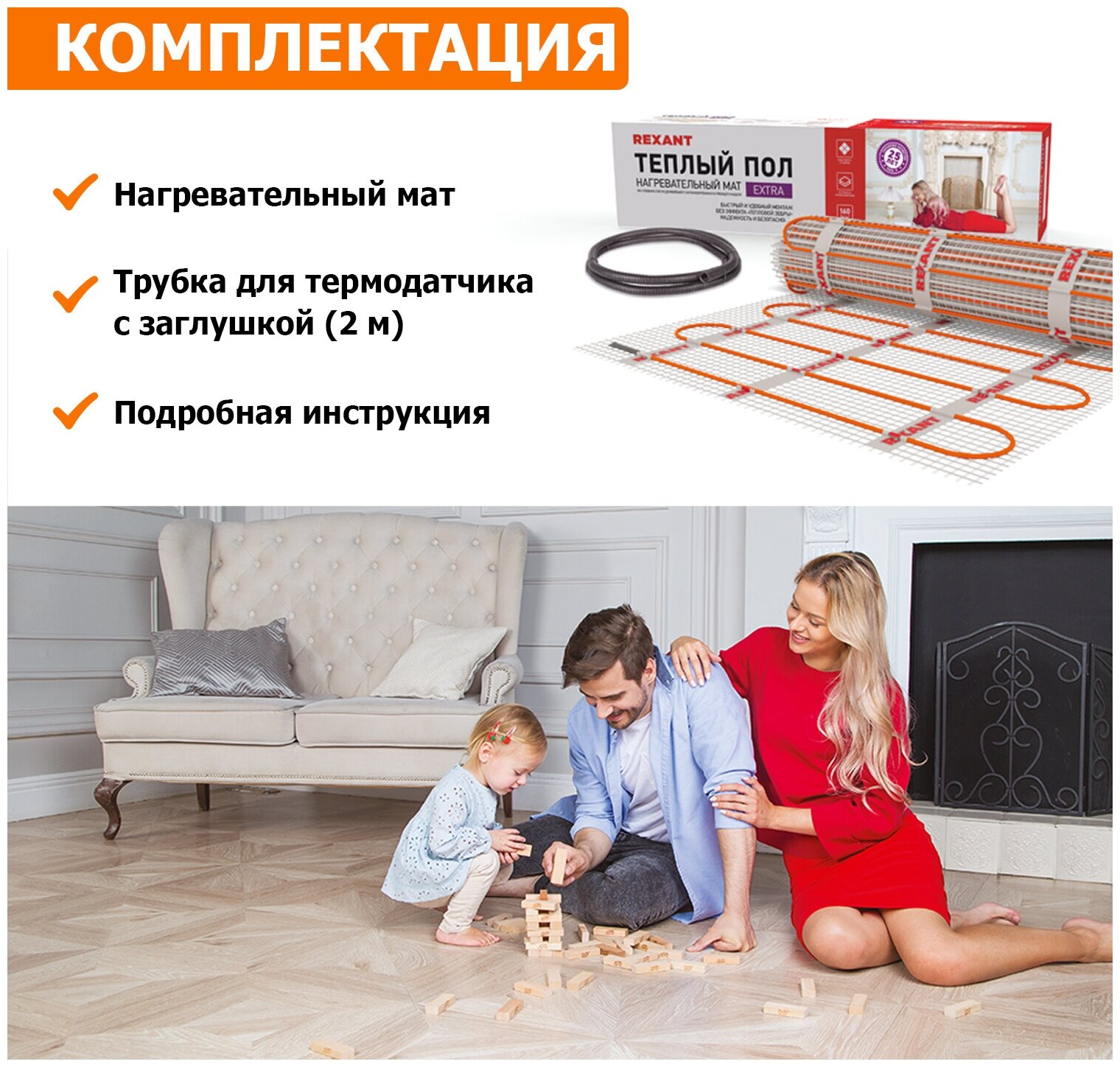 Мобильный теплый пол, REXANT, 51-0502 160Вт, 1 м2, 200х50 см интересное:
