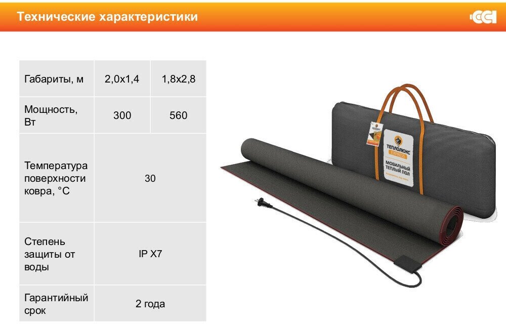 Мобильный теплый пол под ковер Теплолюкс Express 2.8 м2, 200х140 см, 300 Вт интересное: