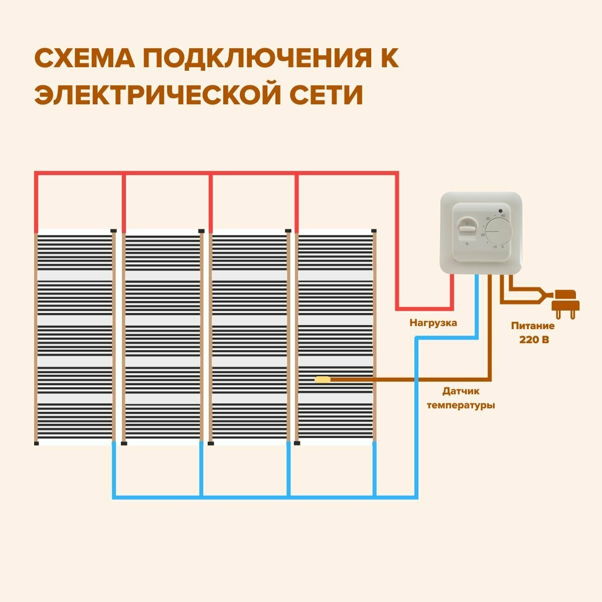 Инфракрасный теплый пол Eastec PTC 1 м х 100 см 220 Вт комплект саморегулир. TLS-100-1 + механический терморегулятор