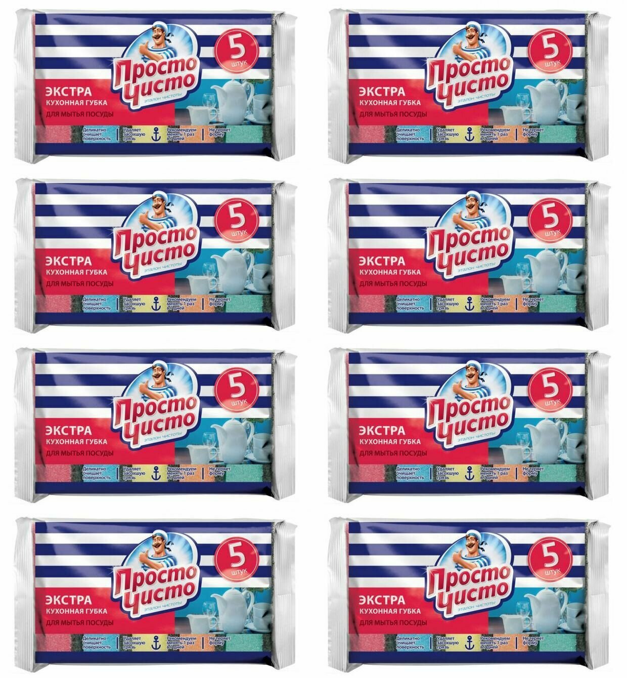Губки для мытья посуды просто чисто Экстра поролоновые 5шт,