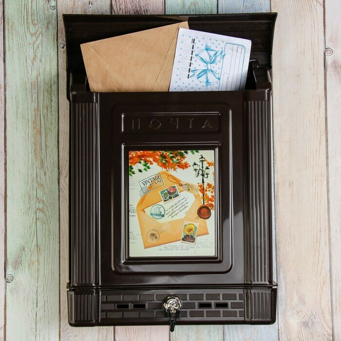 Ящик почтовый с декором с замком 38,5*31*8см коричневый/7 интересное: