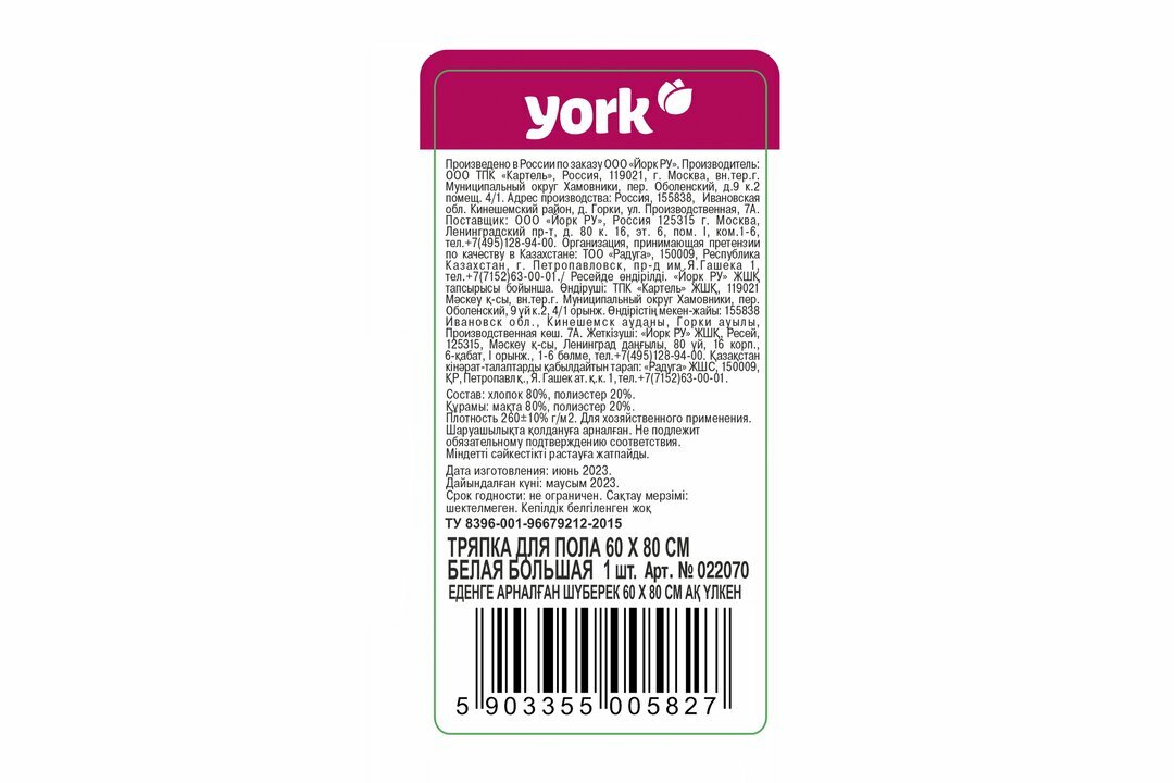Салфетка для пола York, хлопок/полиэстер, 60 x 80 см, белая интересное: