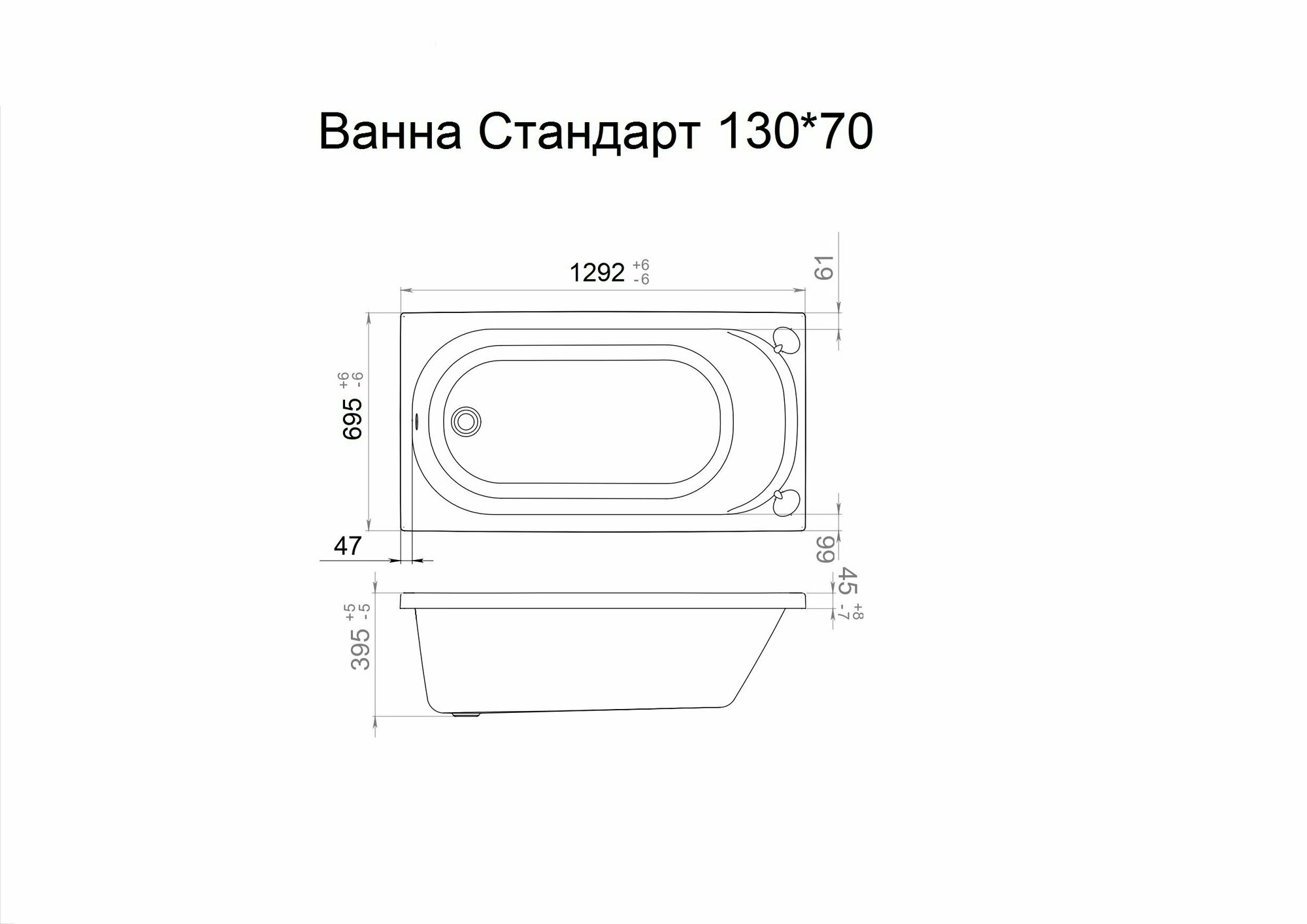 Ванна акриловая Triton Стандарт 130х70