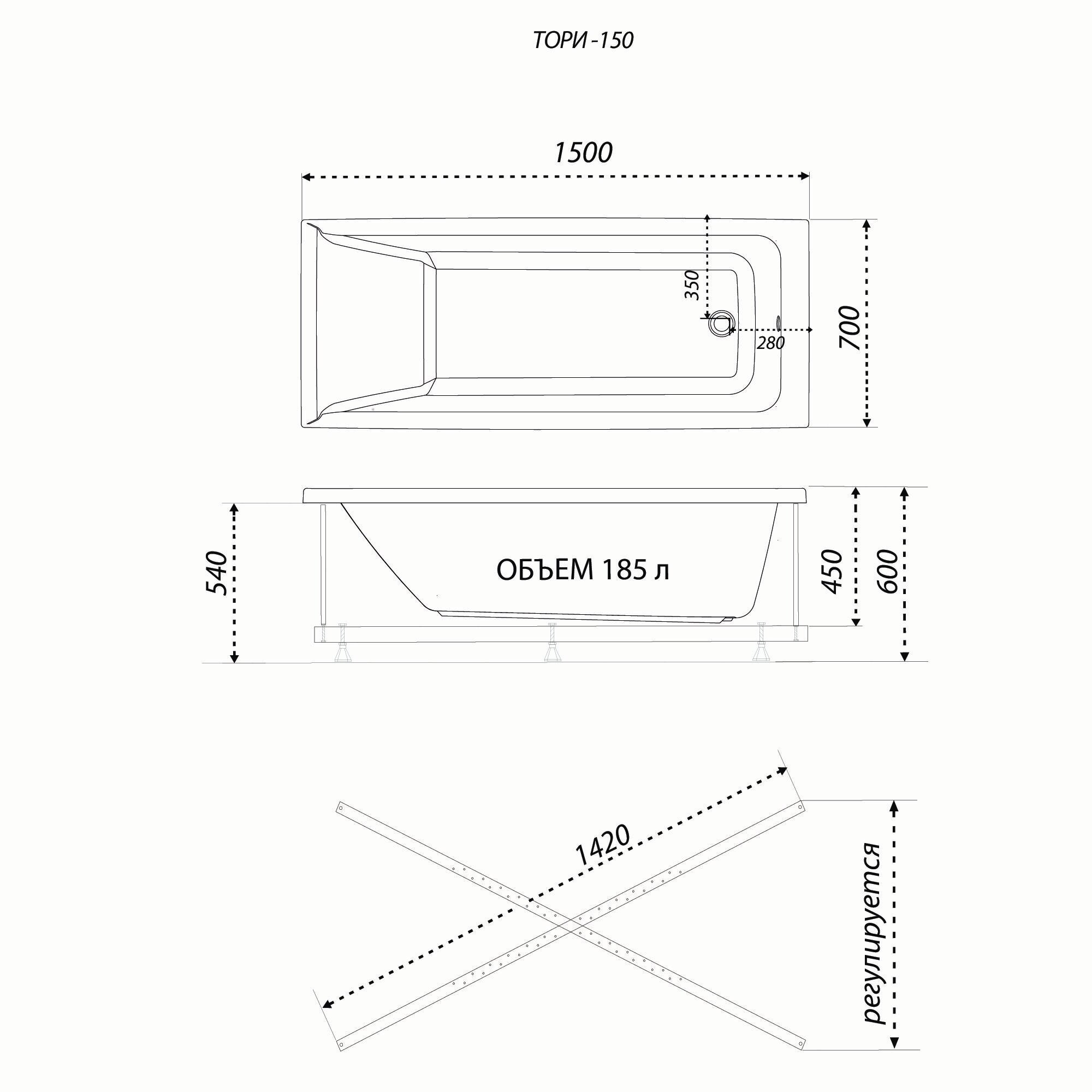 Ванна акриловая 1ACReal Тори 150х70