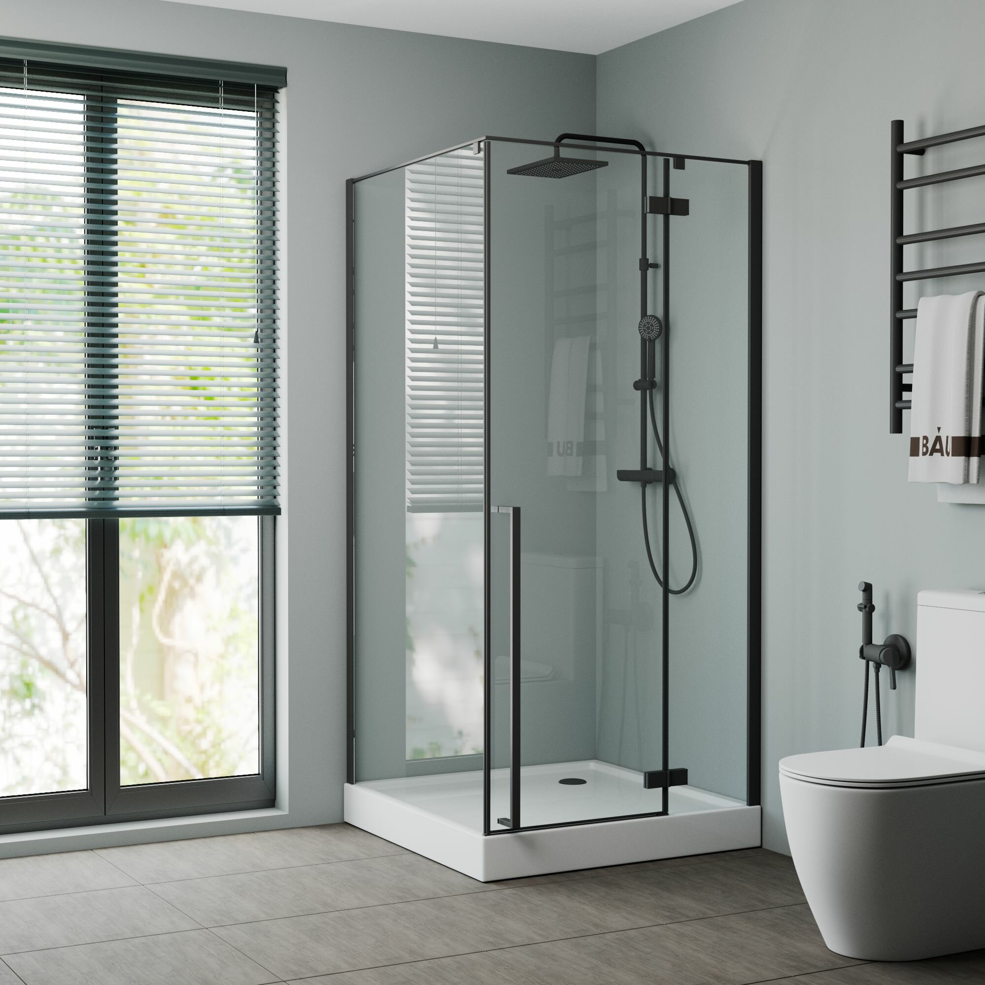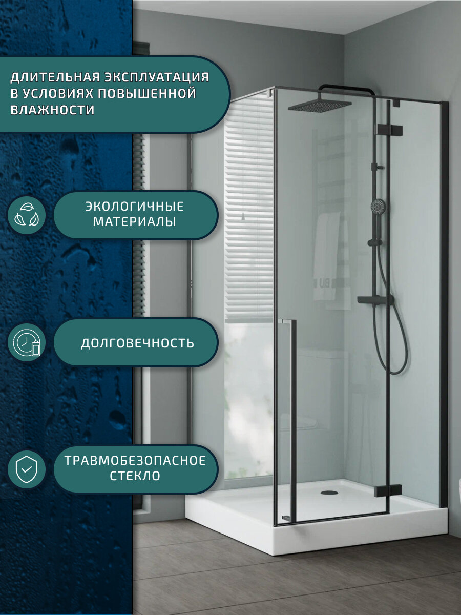 Душевой уголок BAU Dream Hit Black с поддоном 80x80х195, прозрачное закаленное стекло, черный профиль