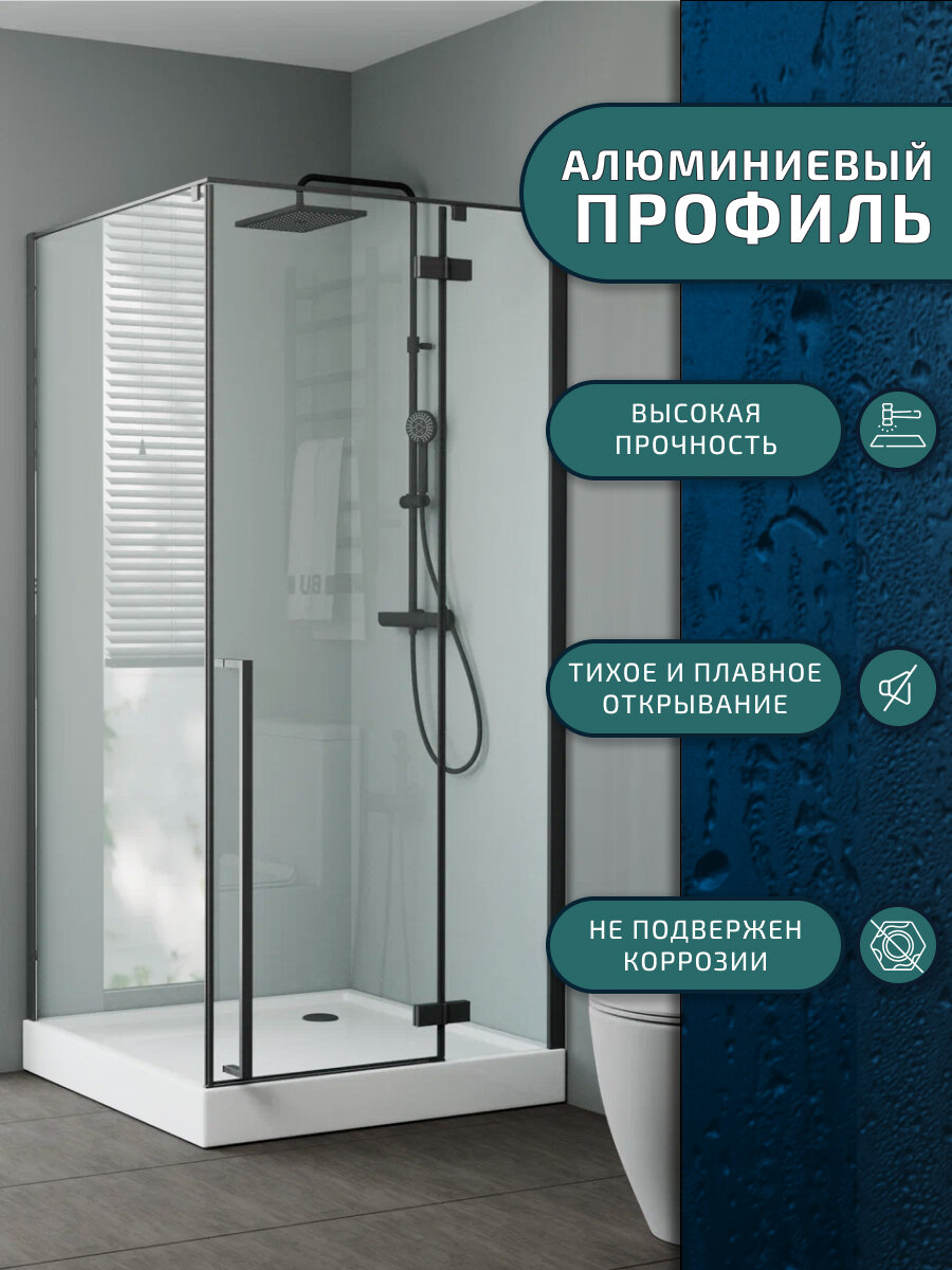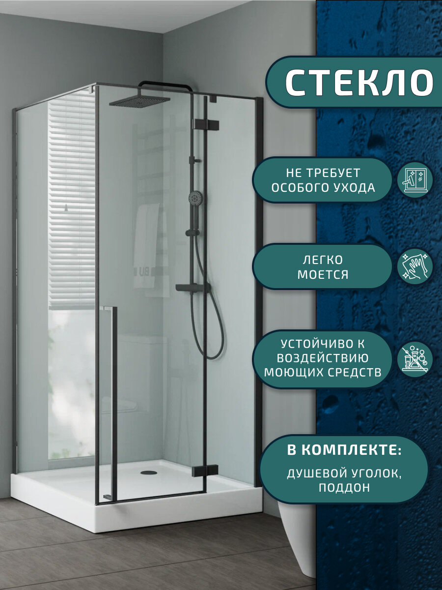 Душевой уголок BAU Stil Hit Black с поддоном 100x100х195, прозрачное закаленное стекло, черный профиль