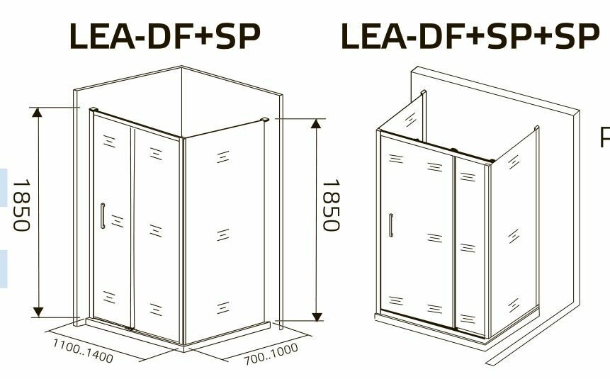 Душевое ограждение SANTREK AQUA Lea- DF-1000-C-Matt Black 1000*1850 Прямое стекло Прозр. 5мм, профиль Чёрный
