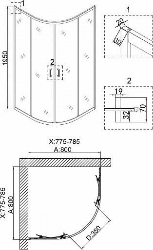 Душевой уголок Black&White Stellar Wind S101 800х800