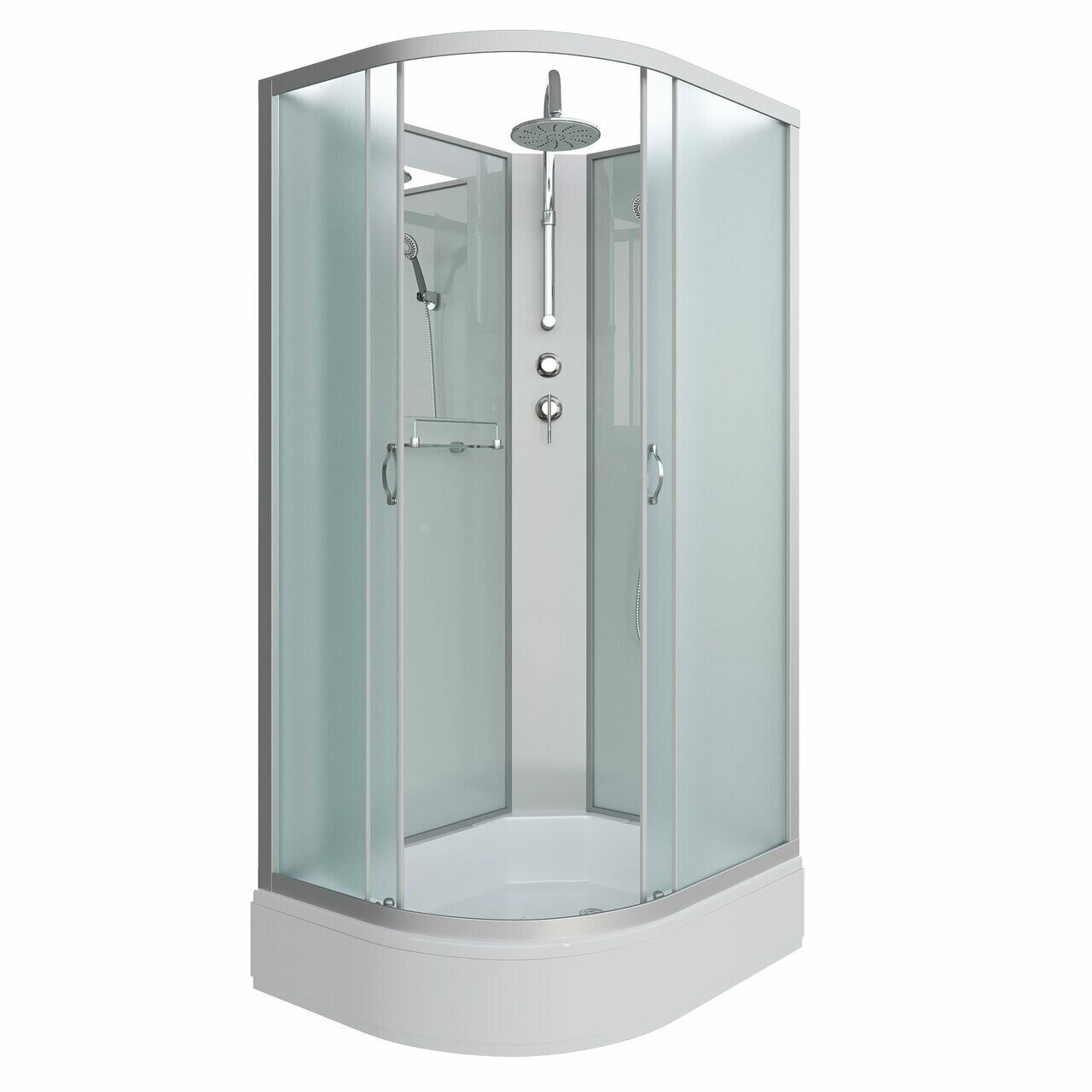| Комплектация | душевая лейка, зеркало, поддон, полки |