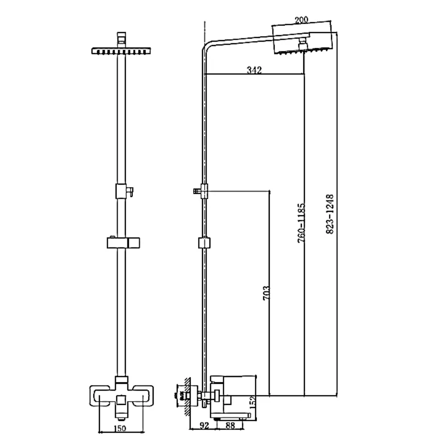 | Форма верхнего душа | квадратная |