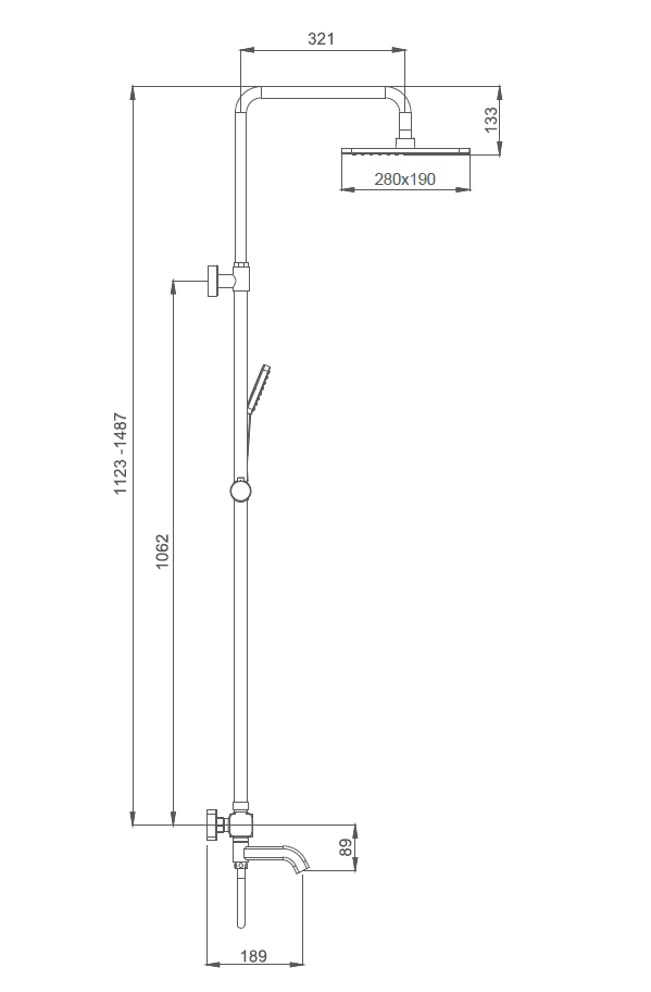 | Дополнительная информация | регулировка по высоте 1123 - 1487 мм, размер тропического душа 250х250 мм |