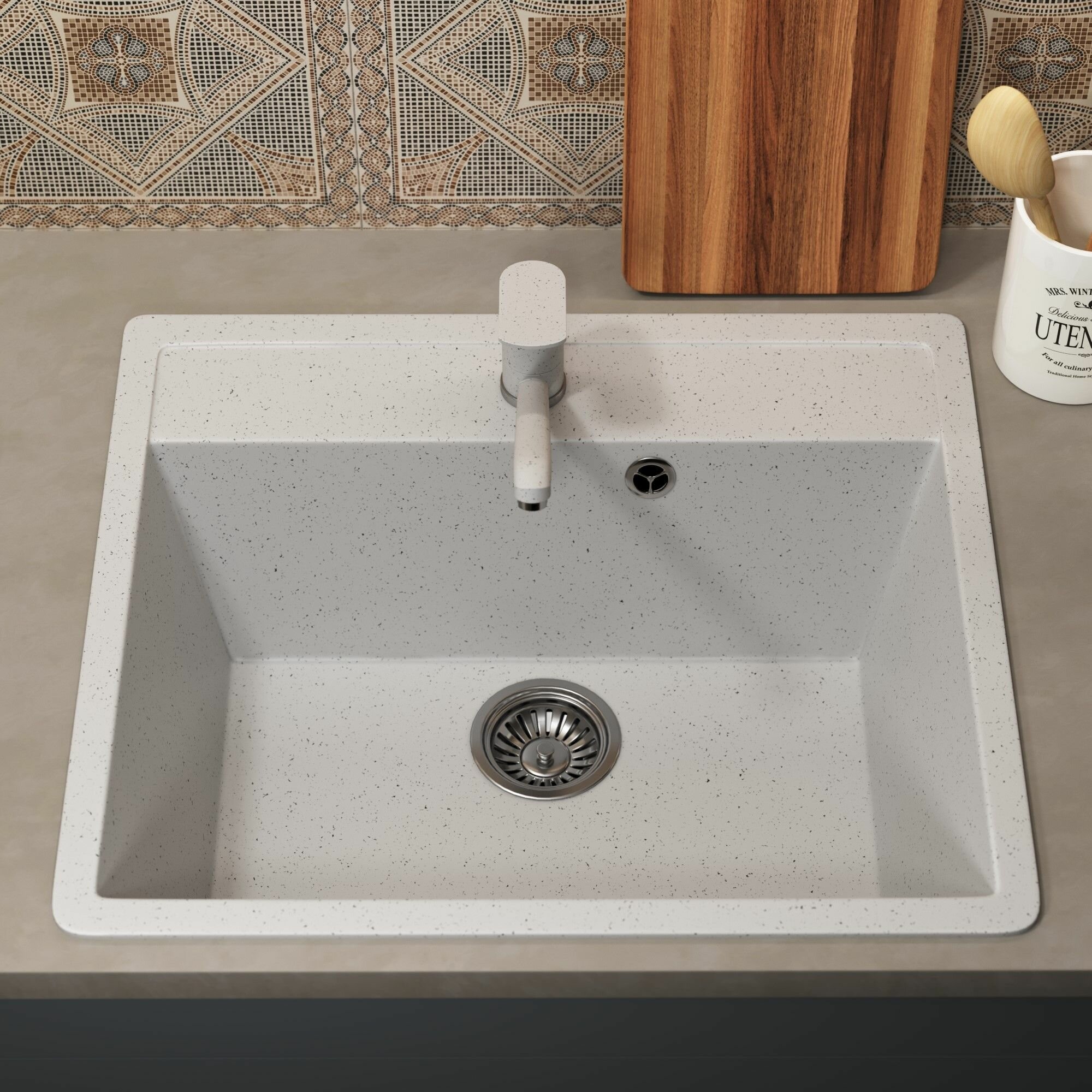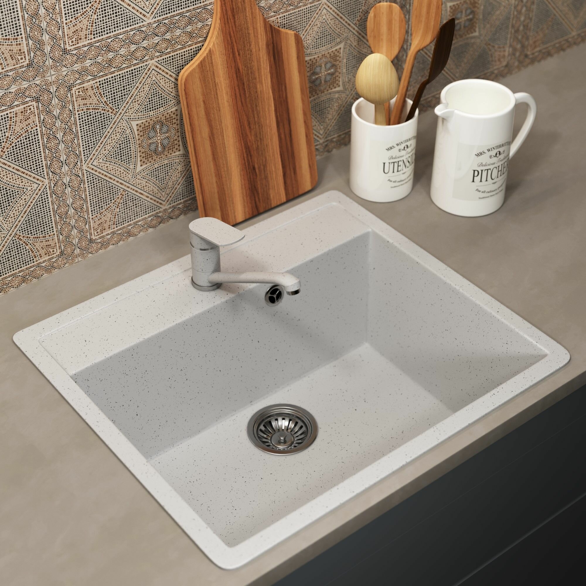 Кухонная мойка из искусственного камня Uperwood ECON UPD-104-001, прямоугольная, белая матовая интересное: